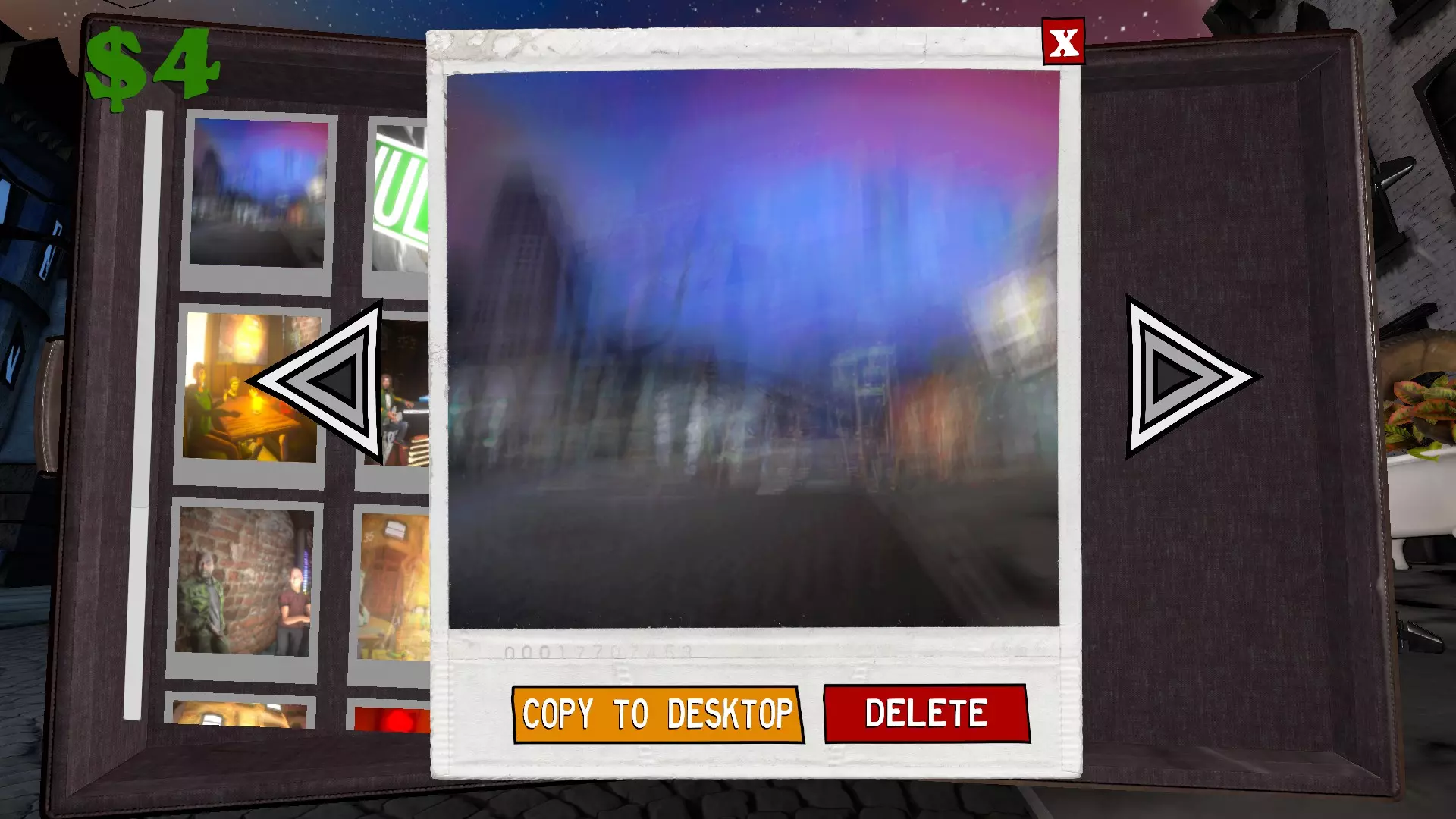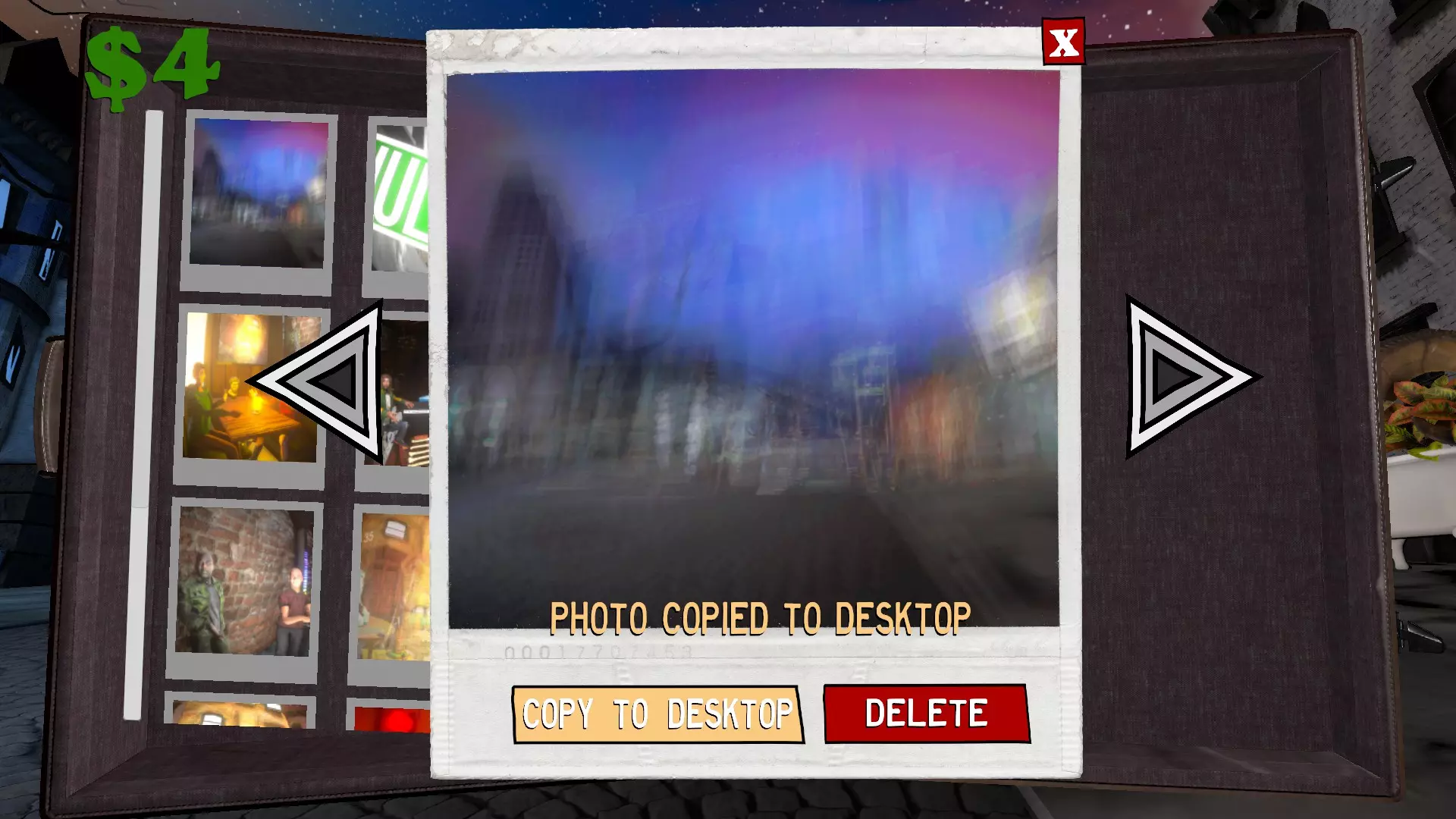 【成就解锁】Exposed 你只需在门廊旧货 sale 购买相机,然后使用 shift 键加滚轮或控制器上的左右方向键调整快门速度设置。拍摄一张照片并让相机静置 10 秒钟。计时结束后,照片会显影,你就能获得该成就。