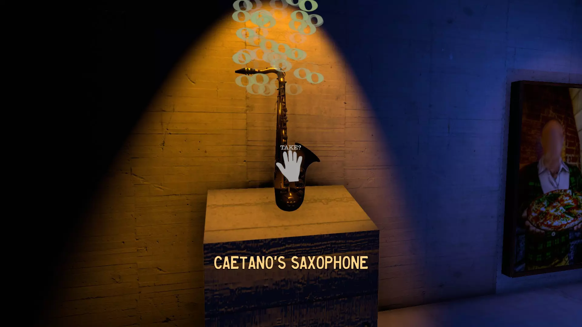 仓库 从保险库拿到萨克斯风后,你会被锁在里面并等待出路。大约15秒后,巴克利(卢克的儿子?)会指向一幅奇怪的画,画中卡埃塔诺拿着一个披萨,而这个披萨会变成一个按钮。按下这个按钮后,通往仓库的楼梯就会显现。下到仓库后,即可获得成就。