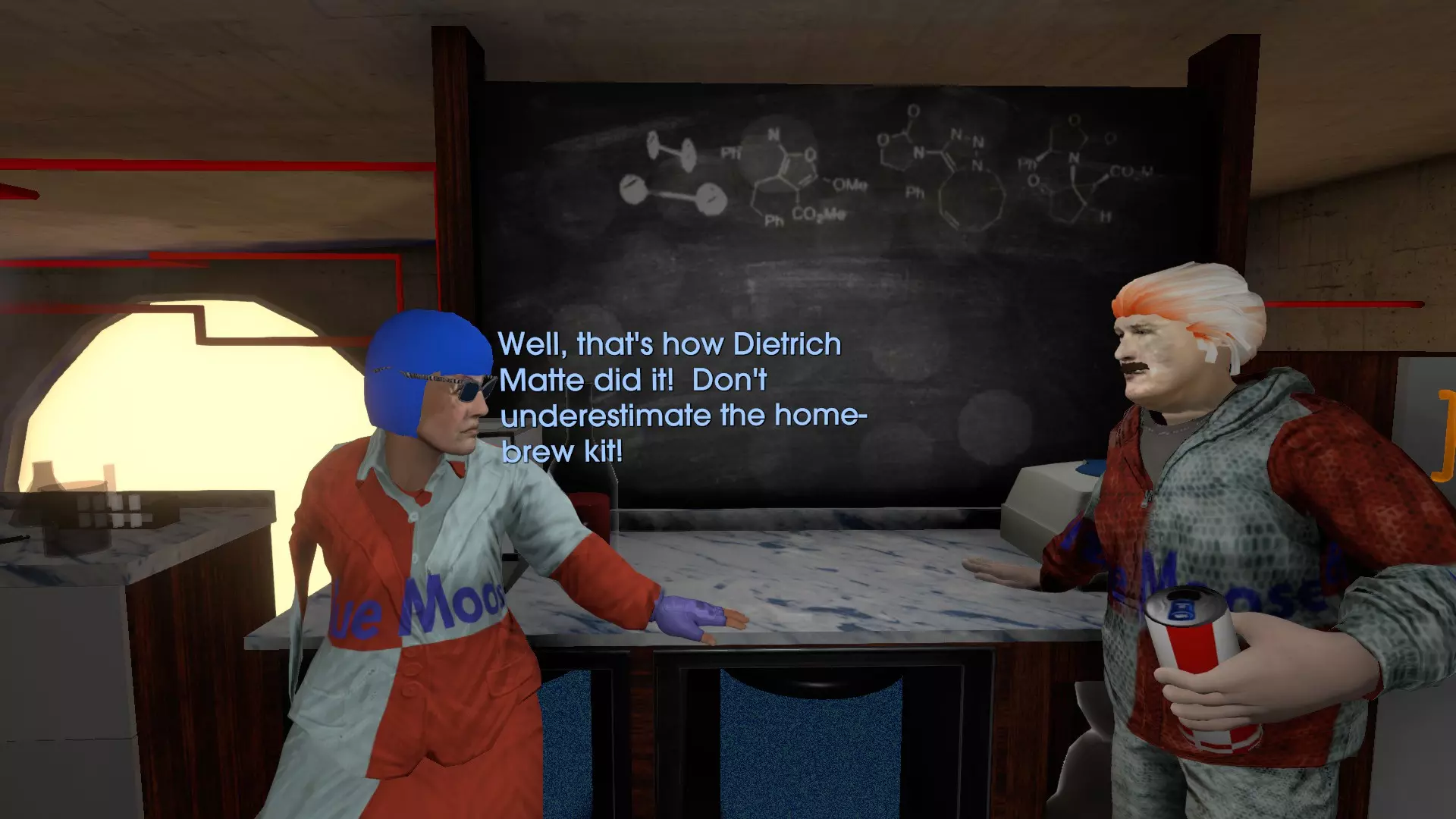 实验室下的真相 此成就仅能在穆尔加配送任务期间获取,所以务必记得获取。你需要做的就是在给穆尔加喂了披萨后,在调酒部门下方发现蓝驼鹿的骸骨。