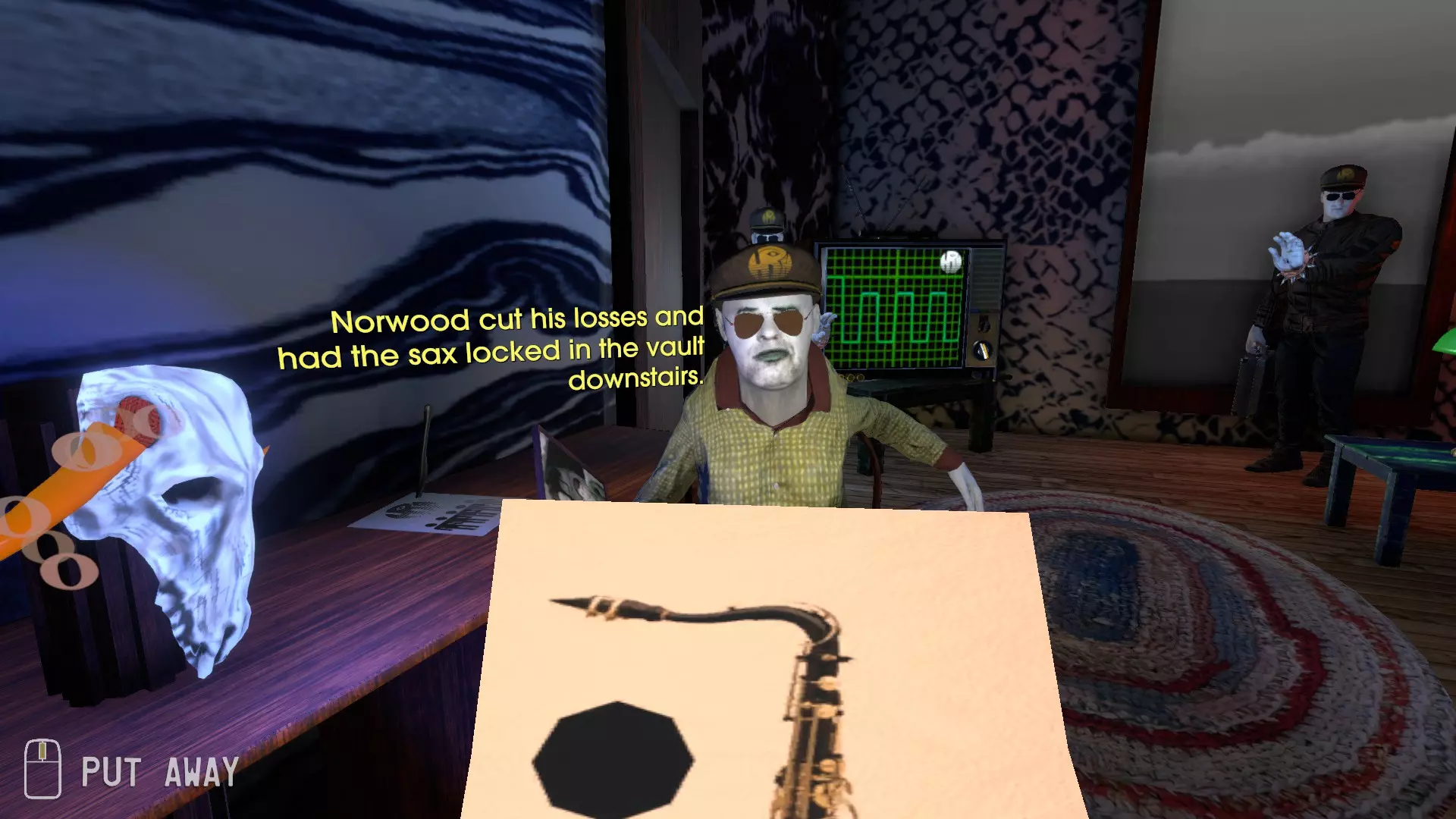 萨克斯风归你 如果你已完成游戏,这个成就应该已经属于你了。如果你莫名其妙地完成了游戏却没获得这个成就,或许你应该向Cosmo D反馈一下这种情况。不管怎样,只需找到卡埃塔诺的保险库门右把手,并将其插入保险库门以打开它。打开后,拿起里面的萨克斯风即可解锁该成就。