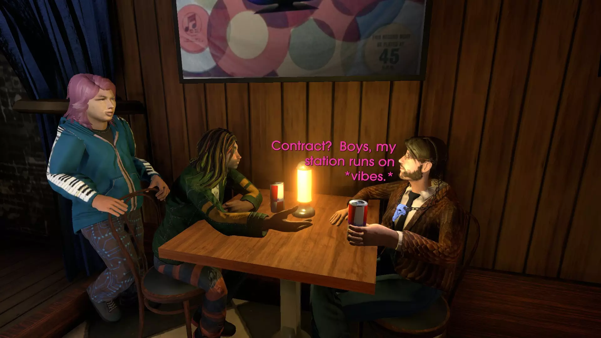 乐队的命运 当你从当铺购买公牛颅骨角柄后,关于乐队命运的对话就会解锁。购买后返回披萨店,乐队成员会和桌旁的男人交谈。只需走上前去,依次浏览他们的对话即可解锁成就。