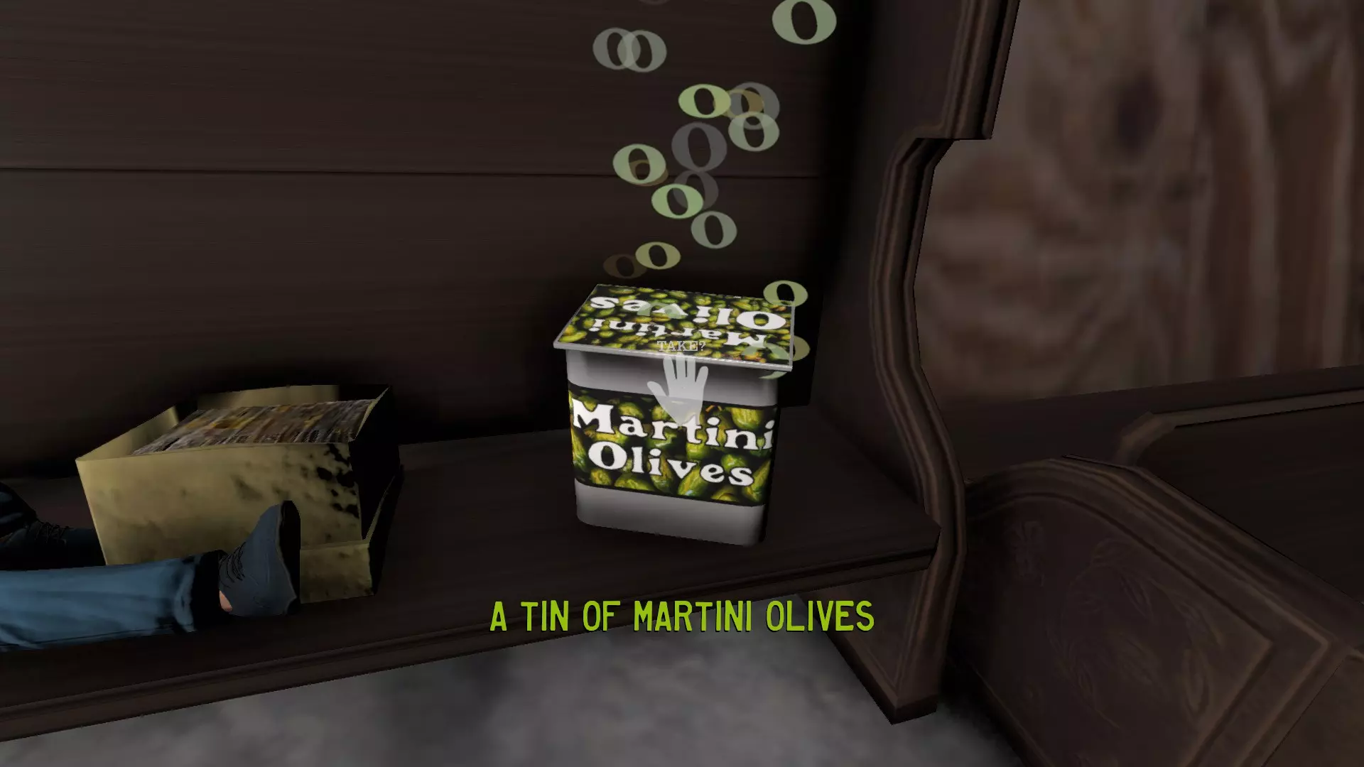 一罐马提尼橄榄 这罐橄榄在游戏初期很容易获取,并且离蠕虫软糖罐很近。从渔民所在的位置出发,只需走上红色楼梯,来到巨大的轮盘赌轮处。向右看,你会发现罐子放在一张长椅上,旁边有一个睡着的男人。