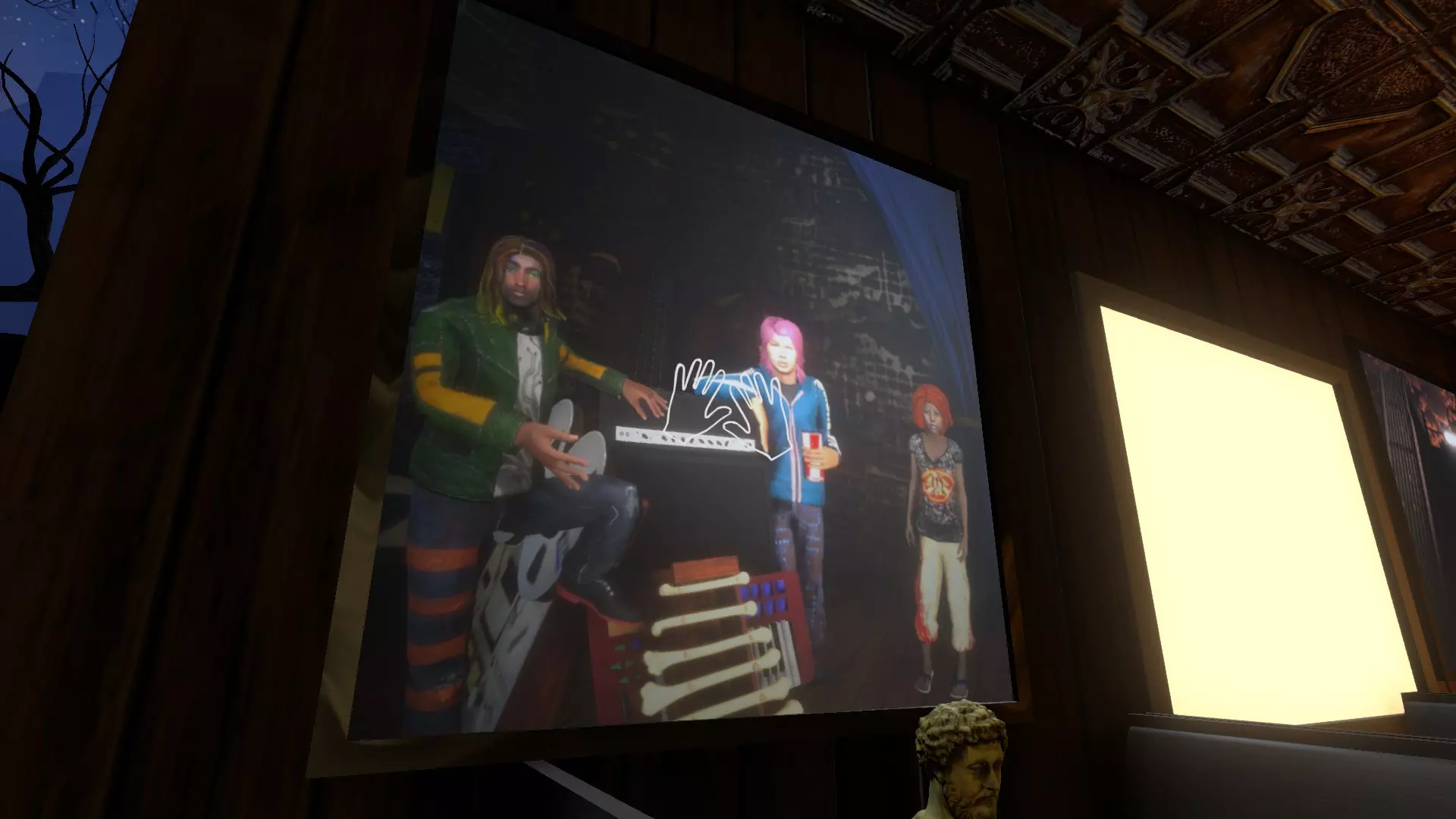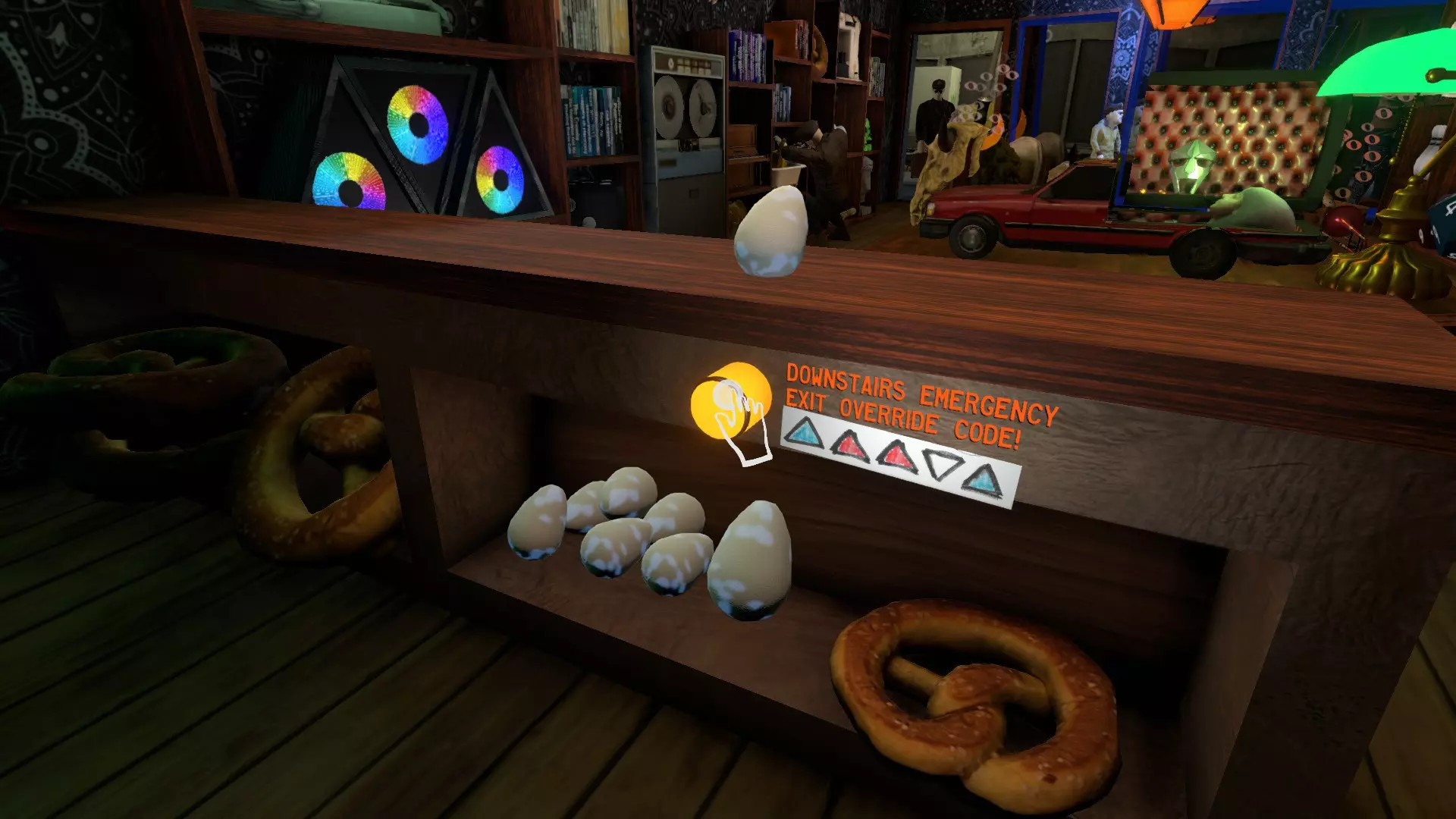 八角形电影 这部电影同样可以在游戏中的任意阶段解锁,最便捷的获取方式是在当铺向杰里米和他的朋友们送完披萨之后。它位于地下室的楼梯旁边。