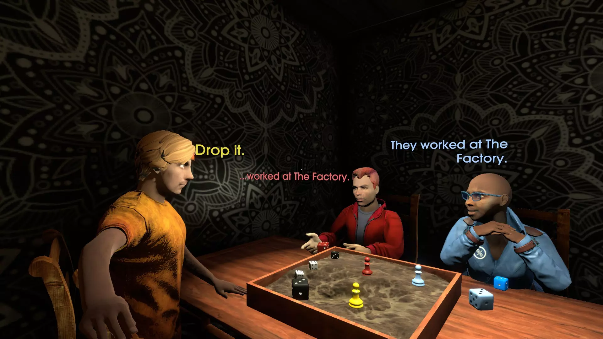 关于杰里米父母的真相。 这个成就随时都能解锁,甚至在你把简历交给卡埃塔诺之前也可以。你只需在保罗当铺地下室里,与玩桌游的三个人不断对话,直到成就解锁。当他们头顶出现三个点时,一定要继续和他们交谈,因为这表示你还没有看完所有对话内容。