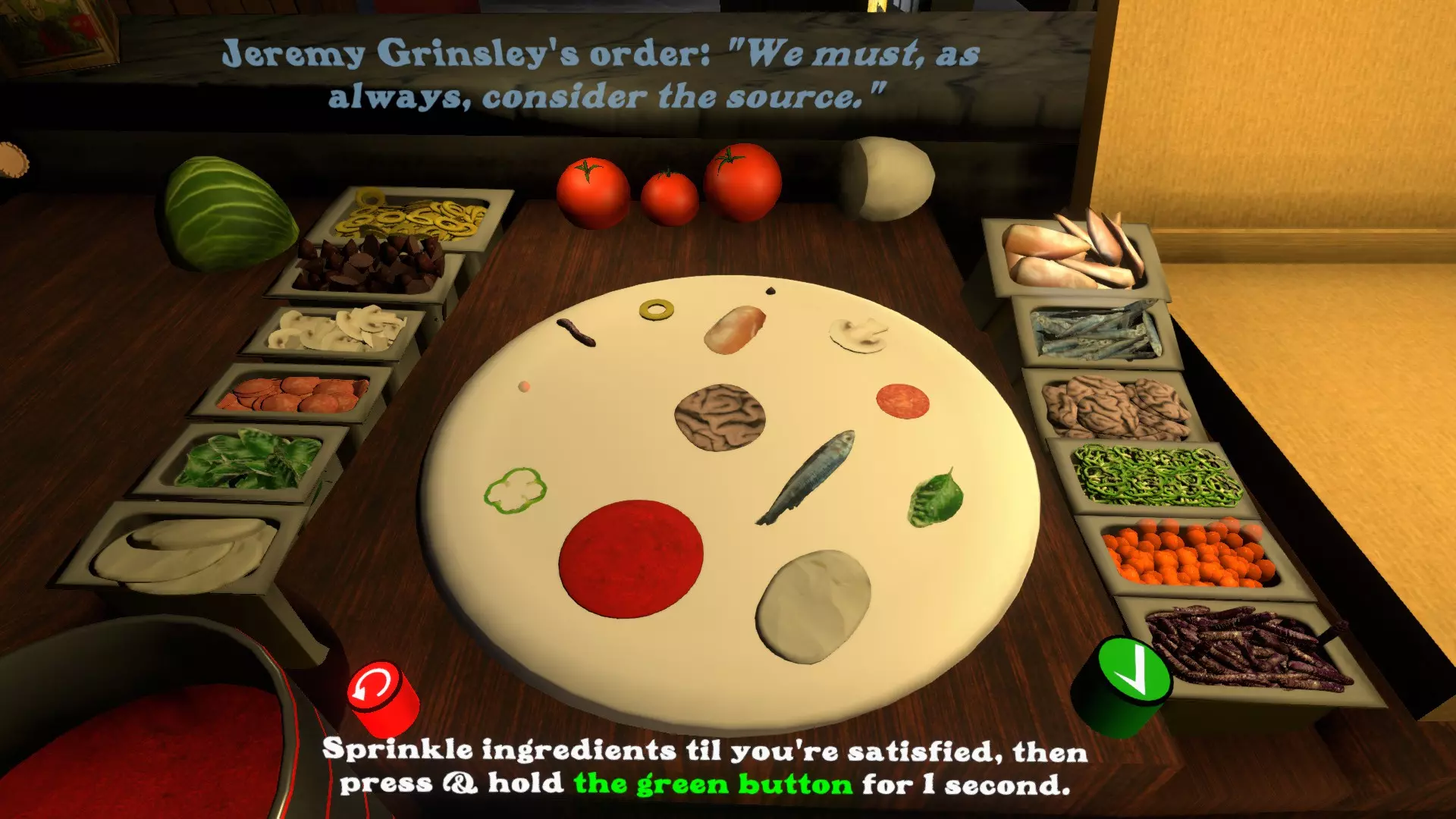 如果本指南没有帮助,或存在误导,欢迎通过Steam给我发消息。谢谢! Pizza Maximalist 收集所有配料罐(参考【你收集了所有披萨配料】)并制作一个包含所有配料的披萨。