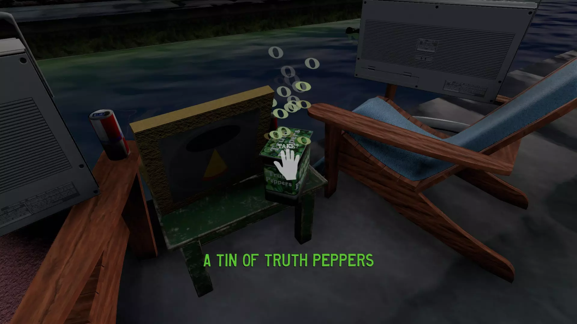 一罐真相辣椒 真相辣椒罐是游戏前期的另一个罐子,可通过探索河边区域获得。沿着红色楼梯往下走,你会发现一张桌子和两把椅子。