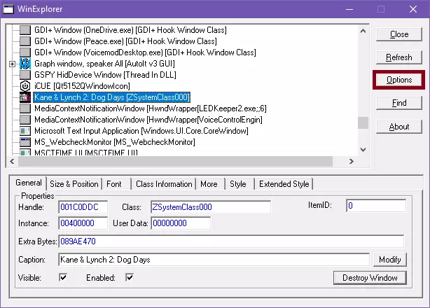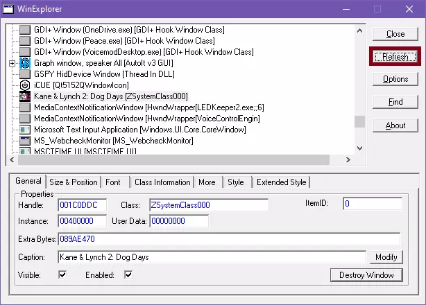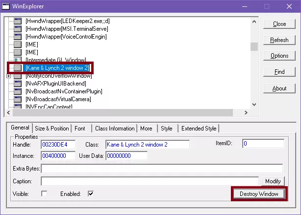 在列表中搜索【凯恩与林奇2:狗日】窗口2。列表将按字母顺序排列,以便查找。找到后,点击一次该窗口,然后点击【销毁窗口】按钮。