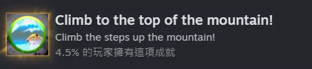 正如名称一样,抵达山顶即可获得~(不过我其实在半山腰就拿到这成就了)