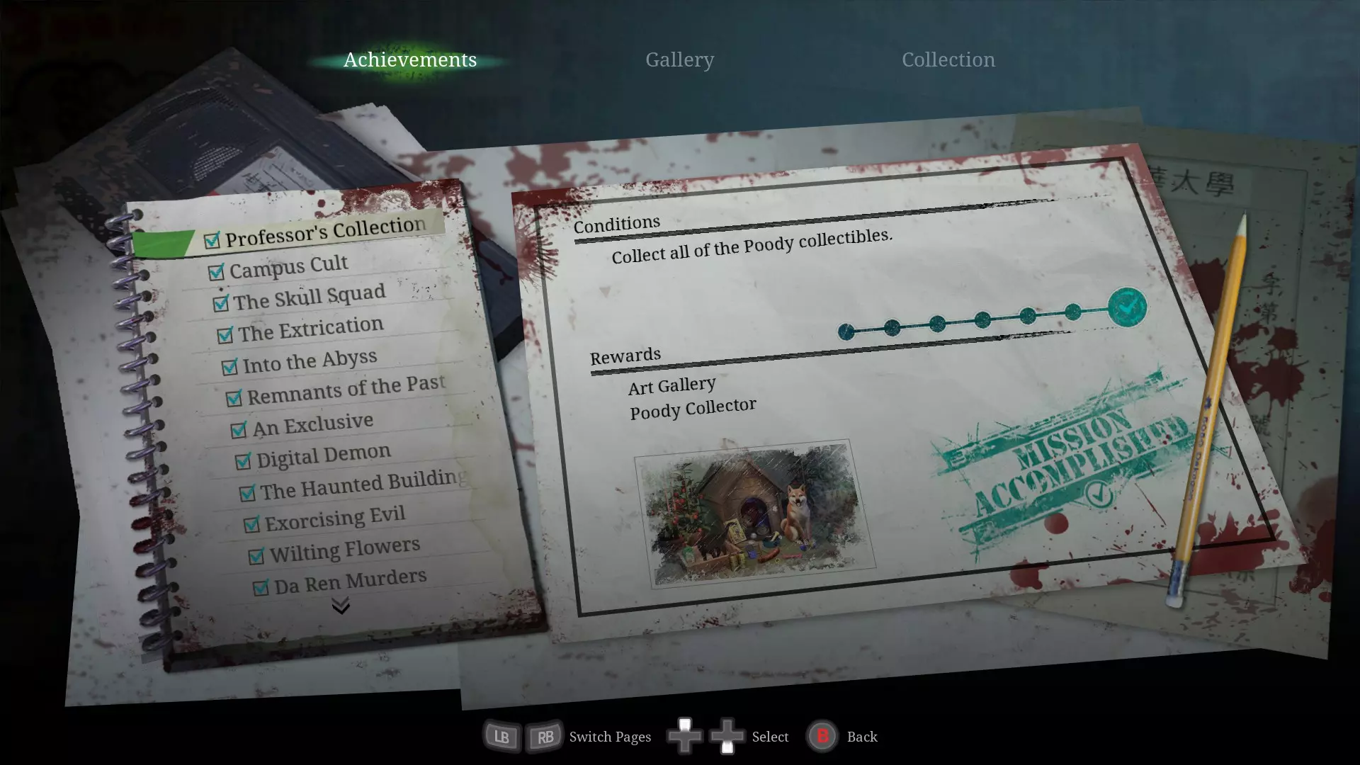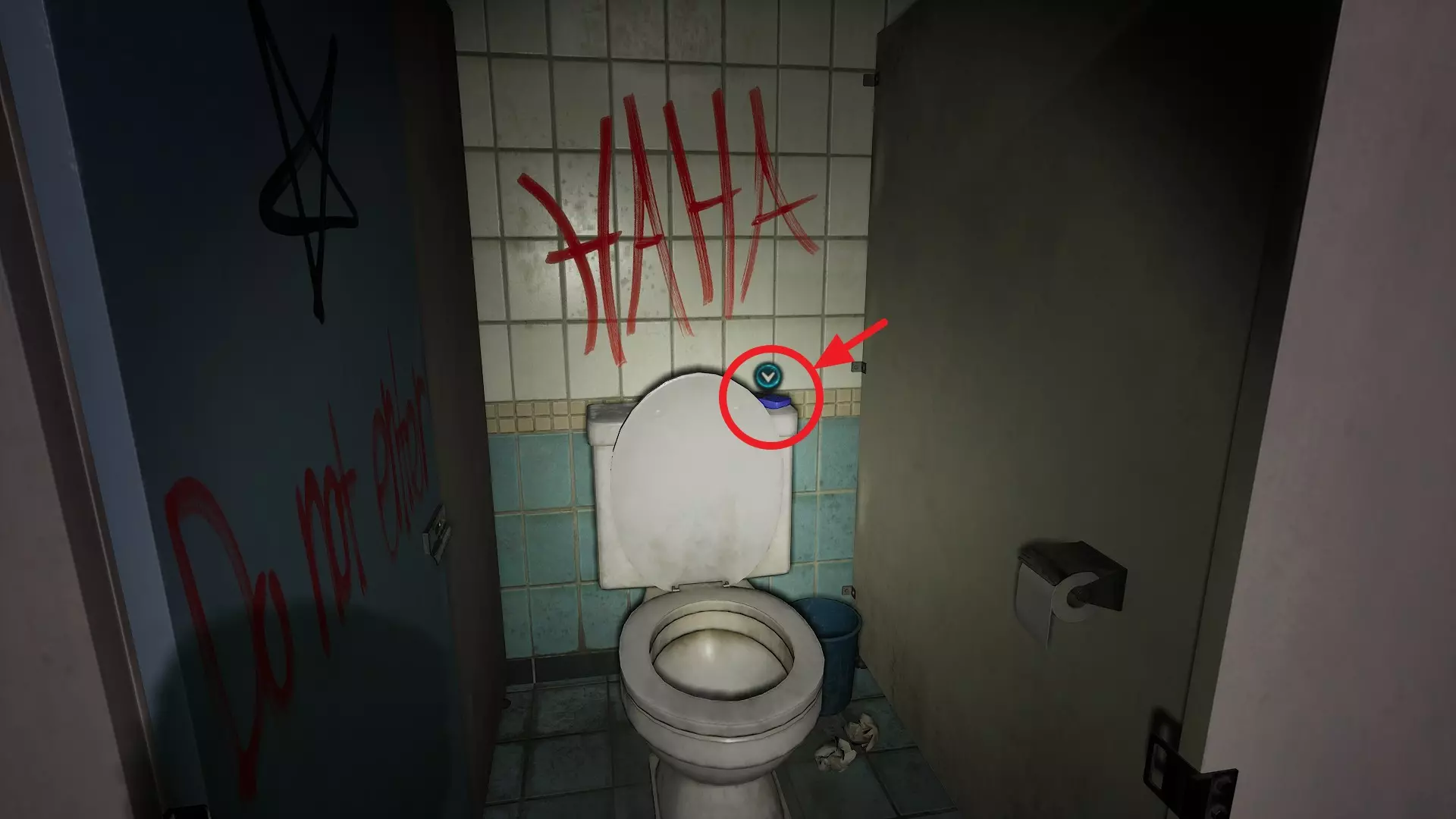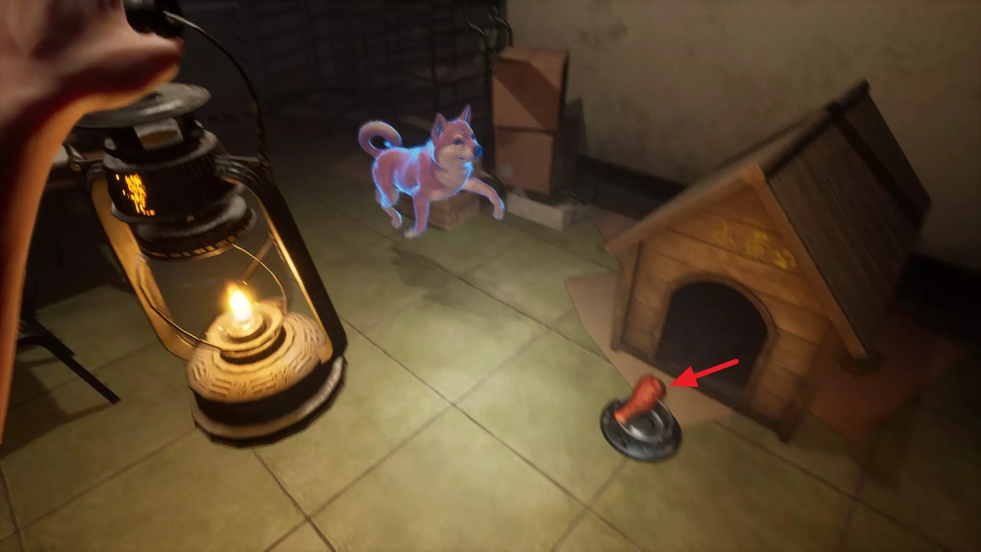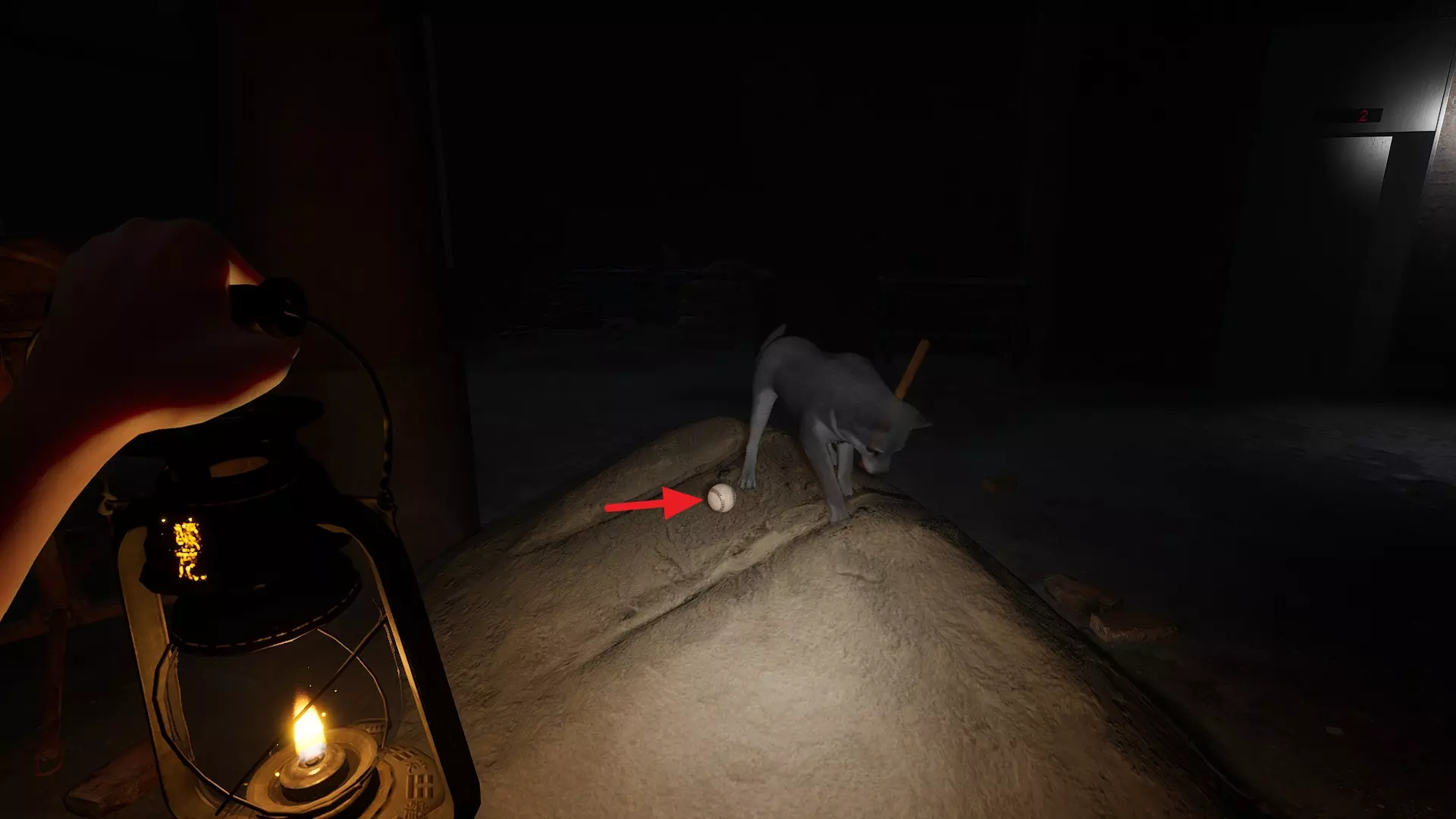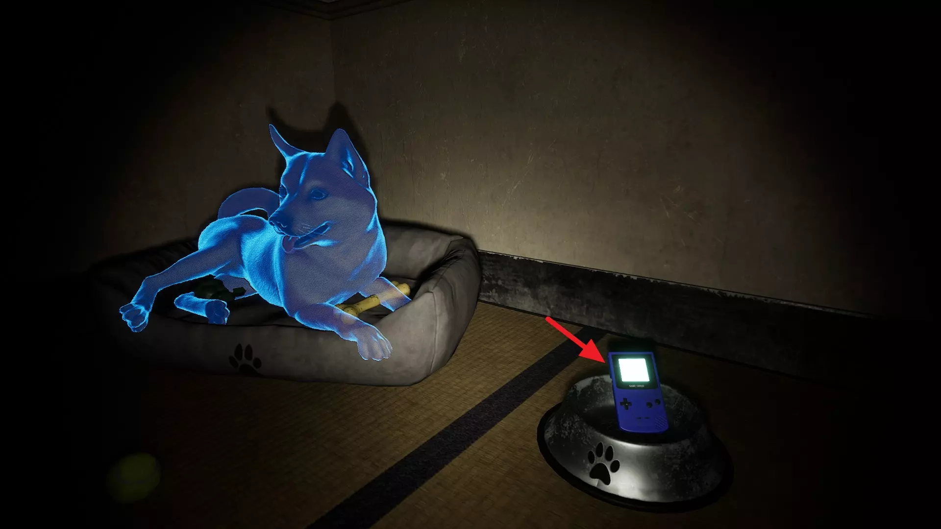 1. 在B1食堂的黄警官附近获取一罐苏打水。 2. 向狗舍打招呼后,走上楼梯。此时狗舍前会出现一个狗食碗,并伴有声响。 3. 将苏打水放入狗食碗中。 第二章 - (2)转向小镇 <第二章 - 闹鬼娃娃的恐怖屋>