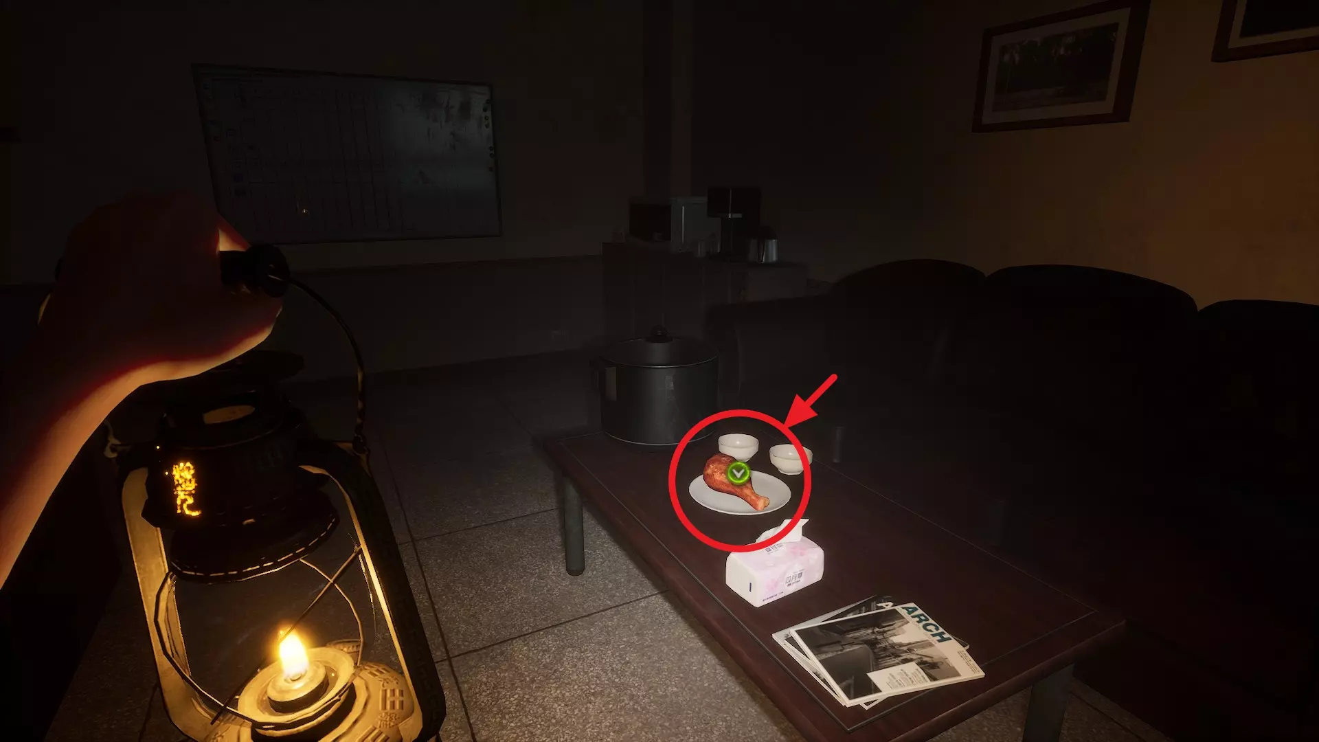 1. 在教官办公室,获取【假鸡腿】。 2. 前往B1层。 3. 将【假鸡腿】放入狗食碗中。 第四章 - (6)鸽子调理剂 <第四章 - 出路>