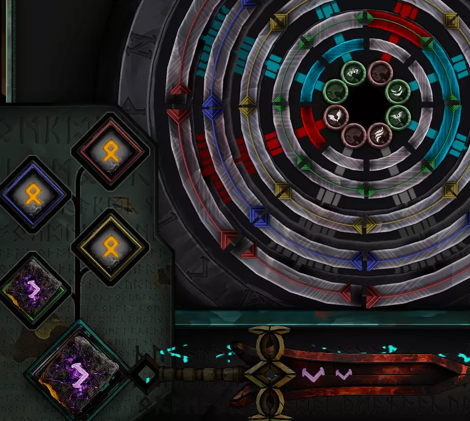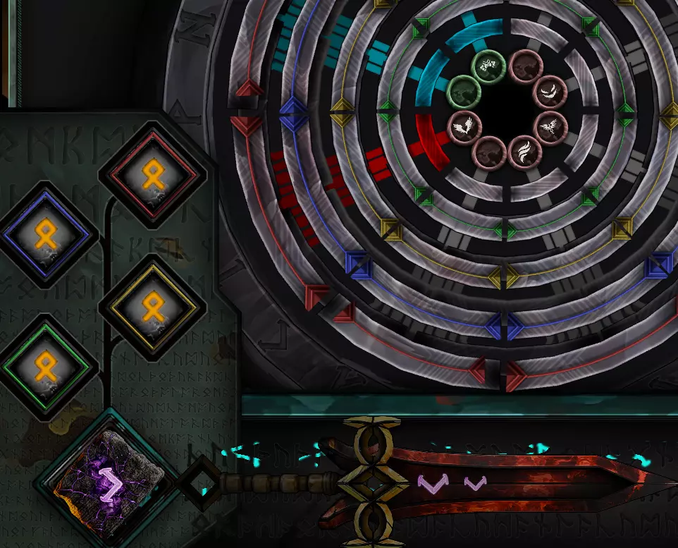 然后你放在原始符文上方的每个符文都将用于添加那里的圆圈。目标是让奖励上方的蓝色部分激活它。(这里我有3个已激活的奖励)