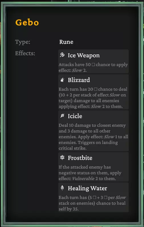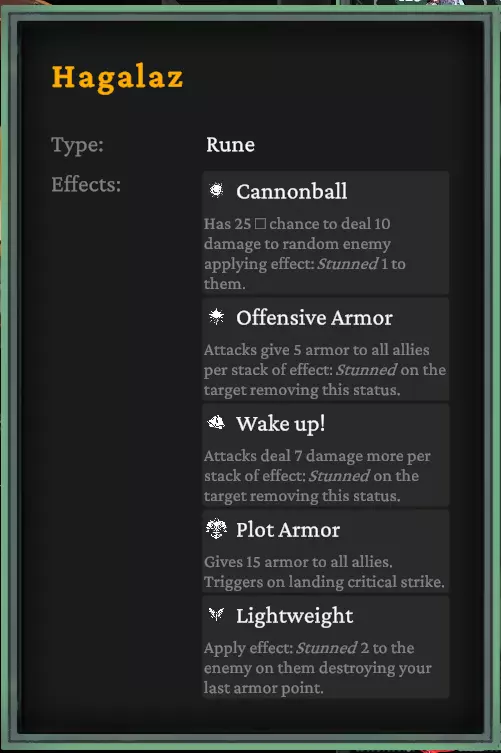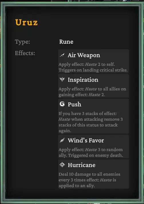 共有7种不同的符文(目前我只解锁了6种)。每种符文都有5种不同的加成效果 - 安苏兹(Ansuz):