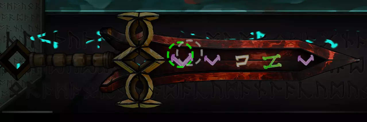 2. 激活符文的加成效果 加成效果会显示在中央。若加成效果为绿色,则会附加到武器上;若为红色,则不会附加。