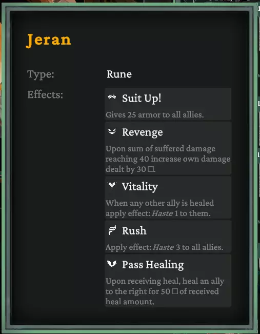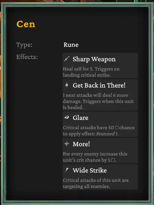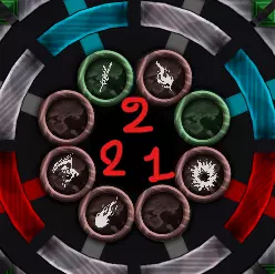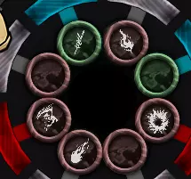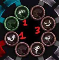 每个符文都有不同的蓝色(+1)/红色(-1)圆圈。若加成至少为+1,则会显示为绿色。安祖斯的圆圈示例: