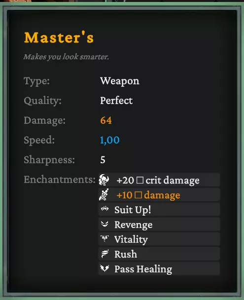 你获得了一把完全附魔的武器!祝你好运!