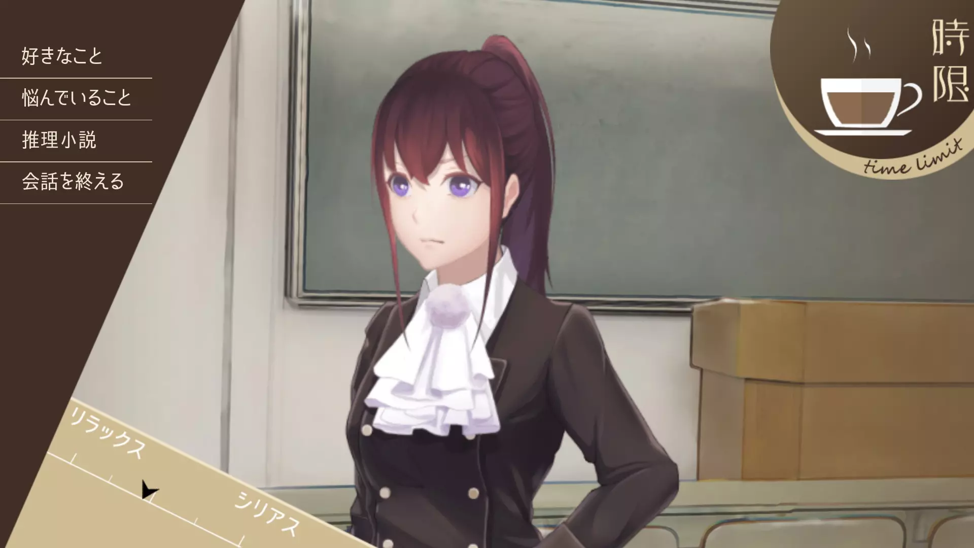 与小伊的对话※即使不收集全部证据也能通关 连续询问相同话题的话,对方不太会多讲,所以中间最好穿插其他话题 顺序上需要先问1.,其他的可以看着进度条多尝试一下 1.“小伊的事情”→“感情类话题”→“家人” 这必须最先询问。当进度条偏向严肃时,对方不会透露 2.“严肃话题”→“学问”→多次谈论“法医学”话题 无法获得证据时,可以先聊其他学问话题,之后再重新询问 3.获得第2个证据后触发“康钦的自杀”剧情 当对方不愿交谈时,可先聊些学术相关的话题,之后再尝试询问 4.选择“轻松话题”→“游戏”→推理游戏 5.选择“关于小伊”→“烦恼的事情” 话题变得严肃后,对方是否会开口? ↓ ↓ ↓ 教授的暗号