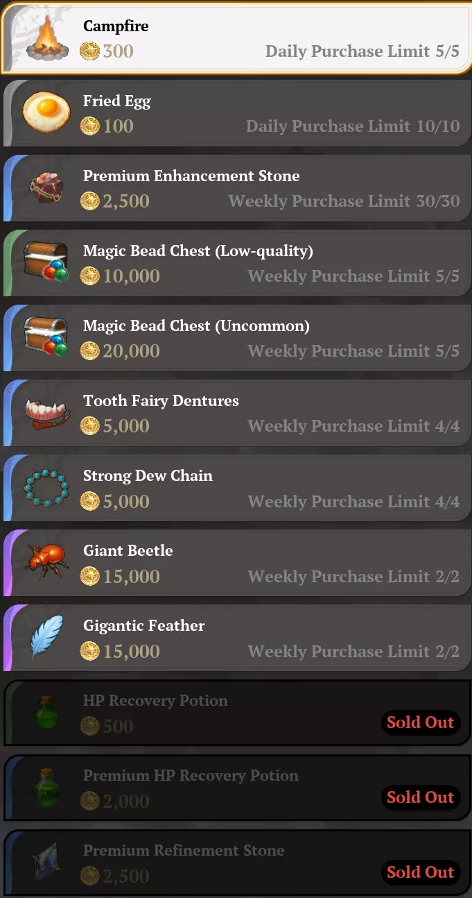 该NPC仅在【服务器时间6:00至18:00】期间出现,并出售以下物品: