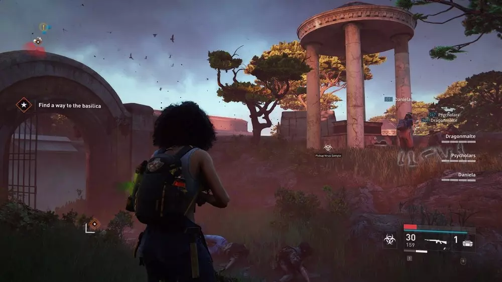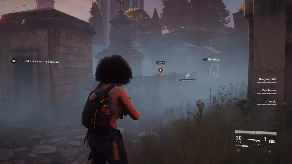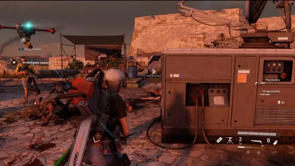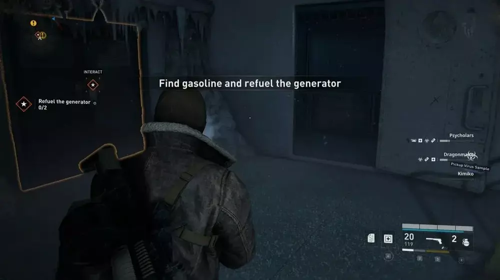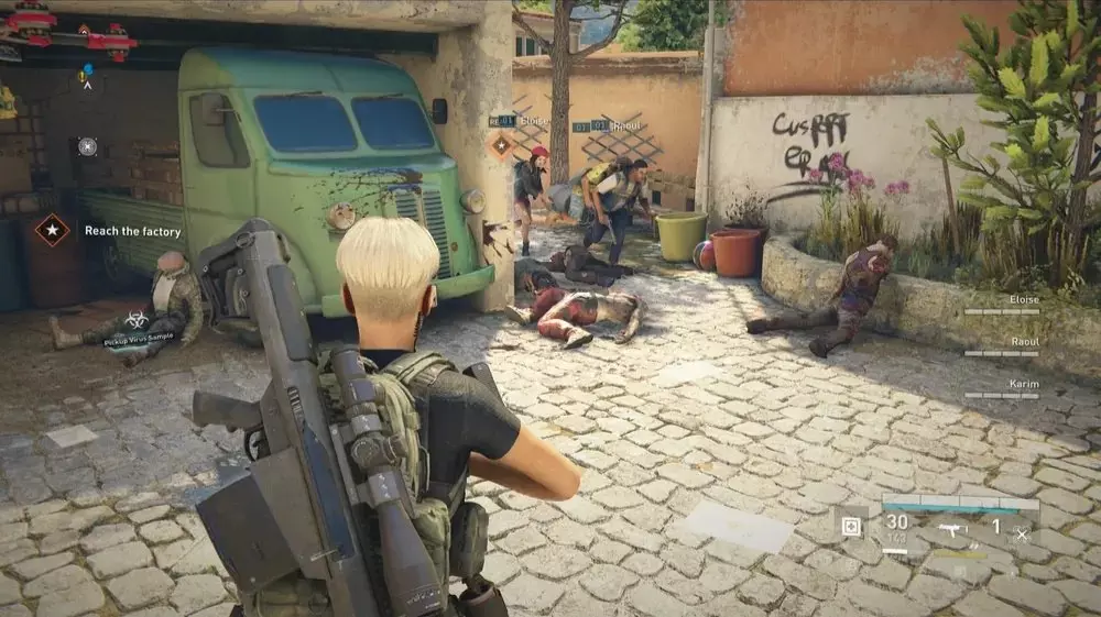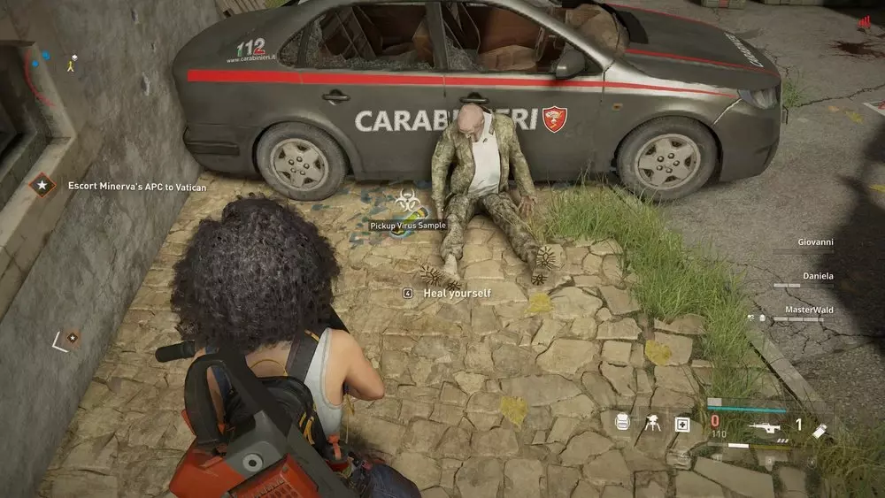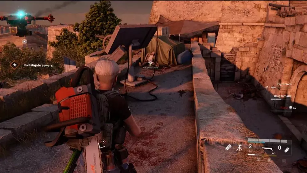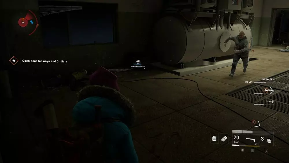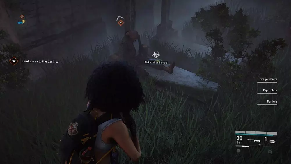 地点1:当到达岔路口时选择左侧路径。沿着斜坡路向下走,经过白色面包车后不久,向左转就能找到一个敞开的车库。进入车库,病毒样本应该藏在一个箱子后面。