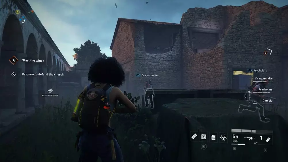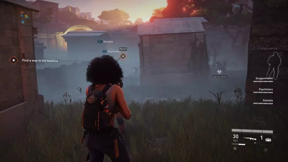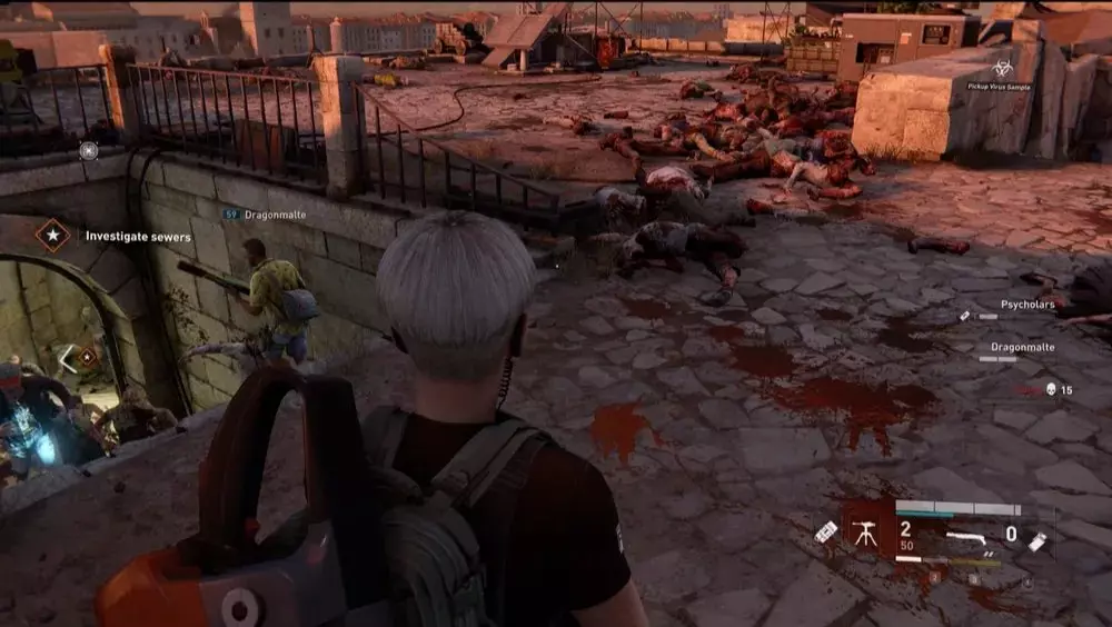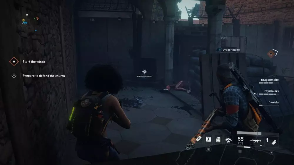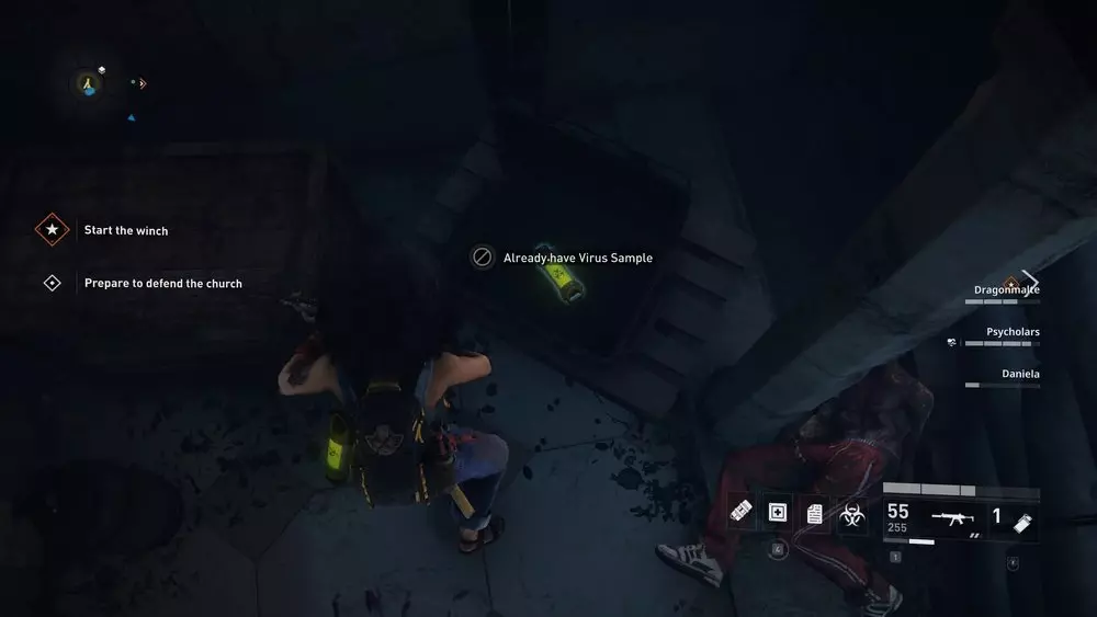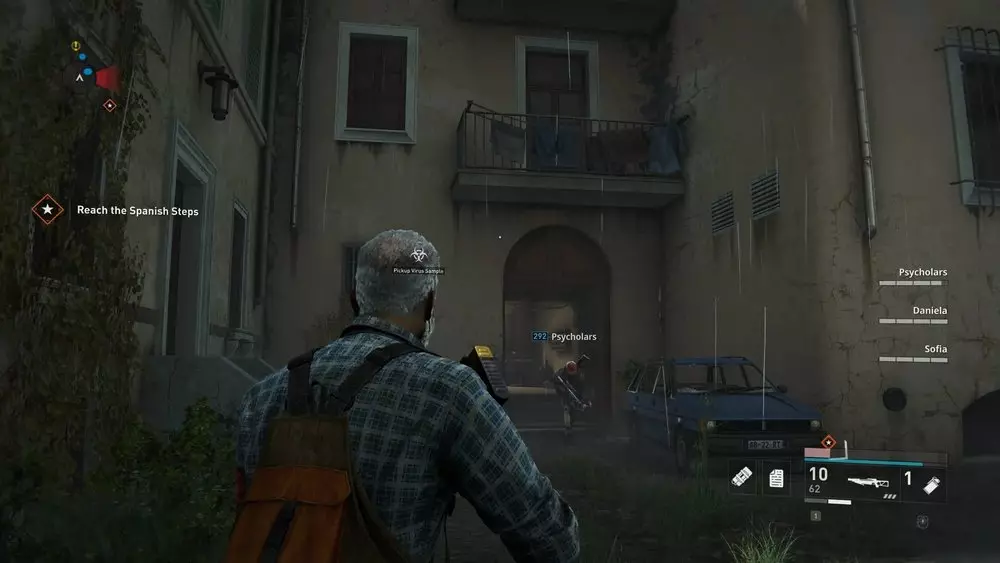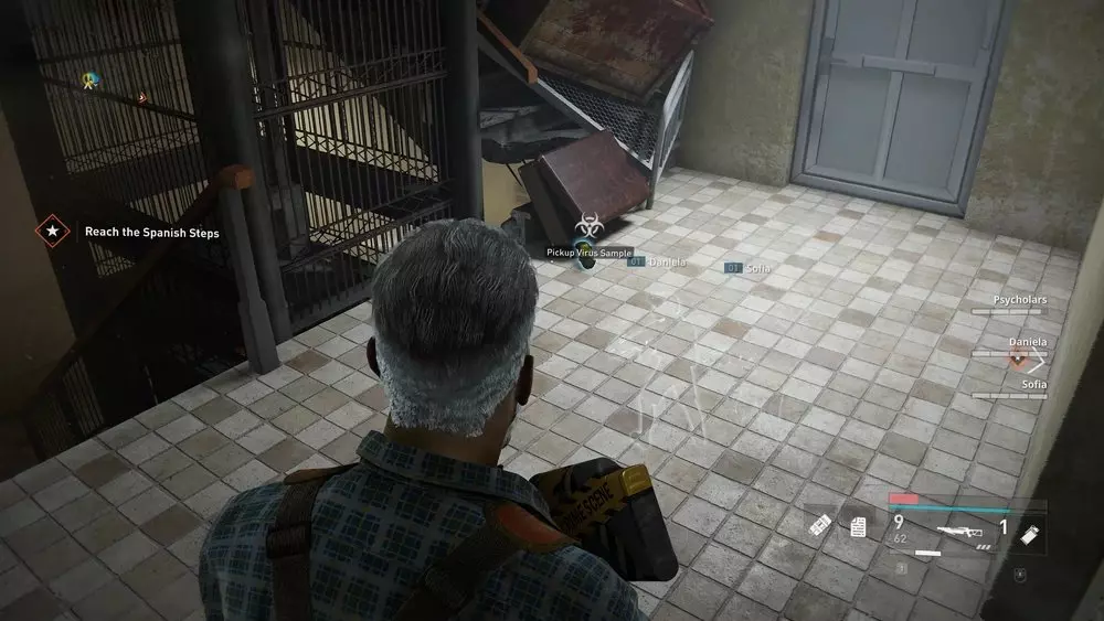位置1:从酒馆上层破碎的窗户出去。下来后,看向你的右侧,那里应该有一个楼梯间,里面撞进了一辆白色汽车。其中一级台阶上放着一个病毒样本。 提示:这适用于本章中所有可收集的样本,但由于这个样本尤其靠近出口区域,最好在你的队伍与斯维特拉娜及其团队会合准备离开前收集它。至于其他位置非常接近的样本,在章节进行到稍后阶段再收集。暂时不要立即收集它们会更有利。不过,不要等到最后一秒才行动,因为一旦消息发送出去,僵尸就会不断出现,直到你逃脱为止,这可能会成为一个棘手的障碍。