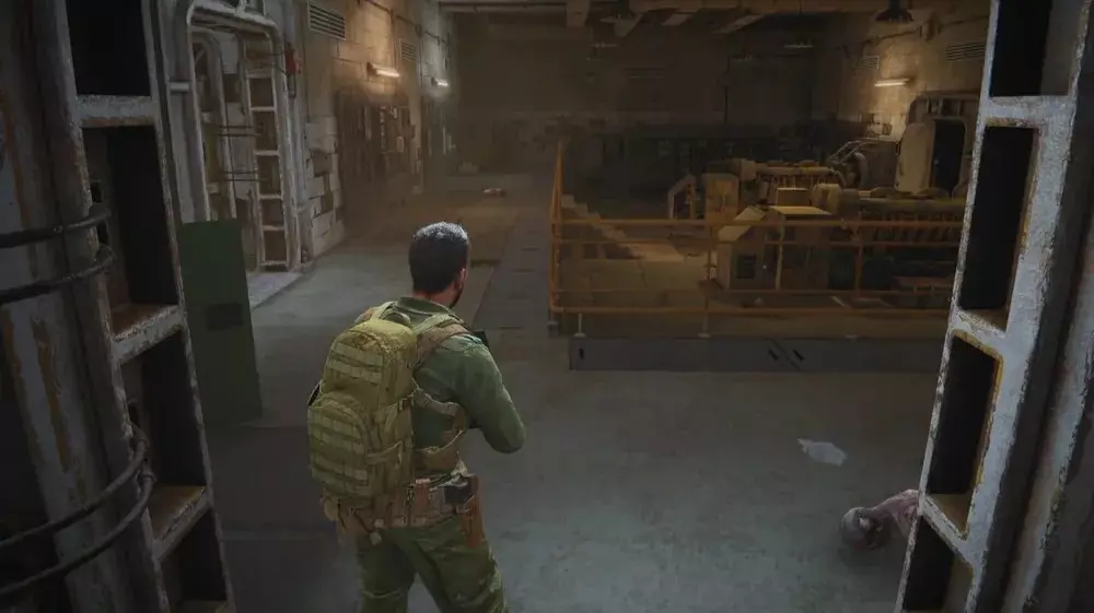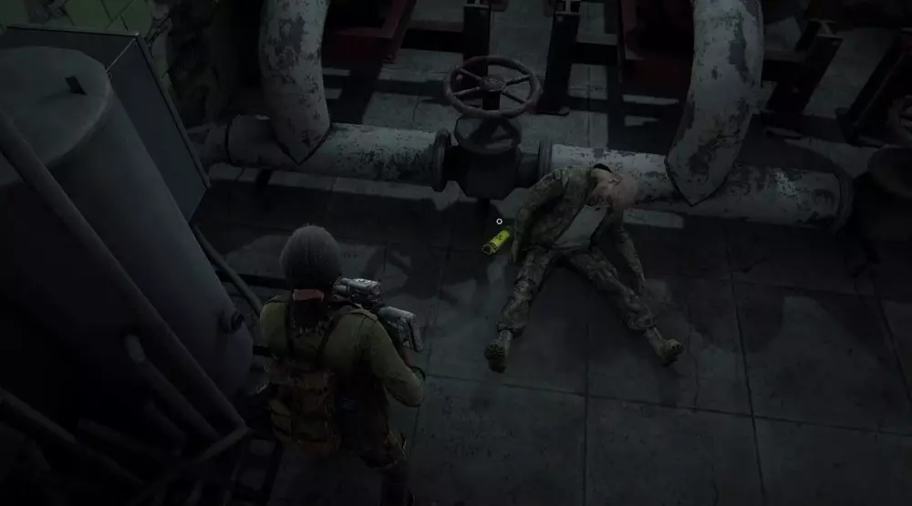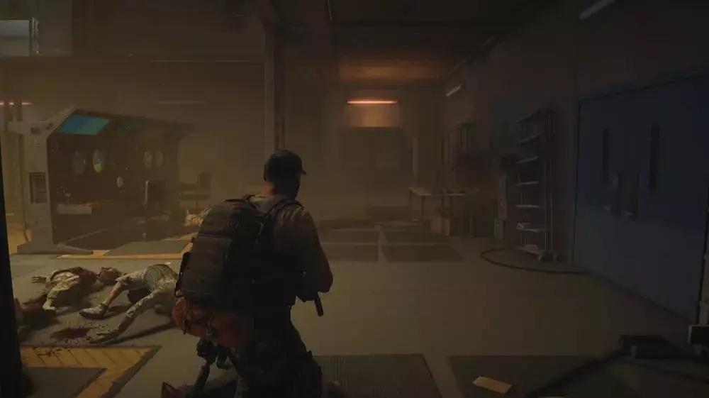 位置2:前往左侧的机房。再向左转,沿着走廊向下走,与电梯所在的房间相对。一直走到房间尽头,角落里有一具士兵尸体,其下方部分覆盖着一个病毒样本。