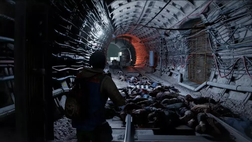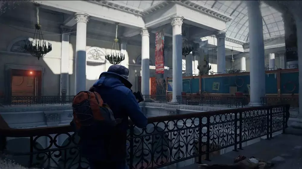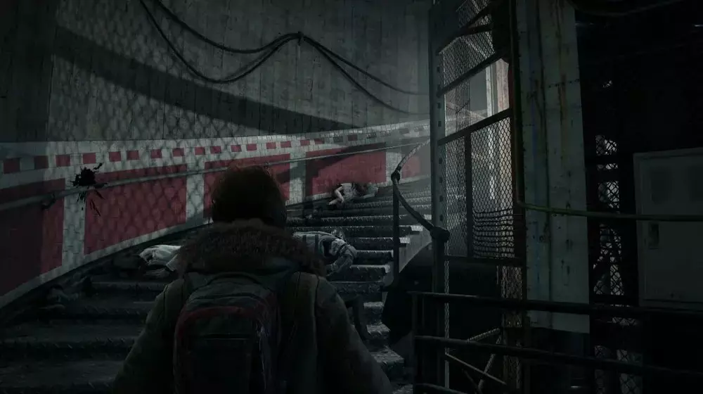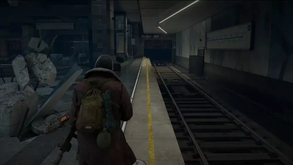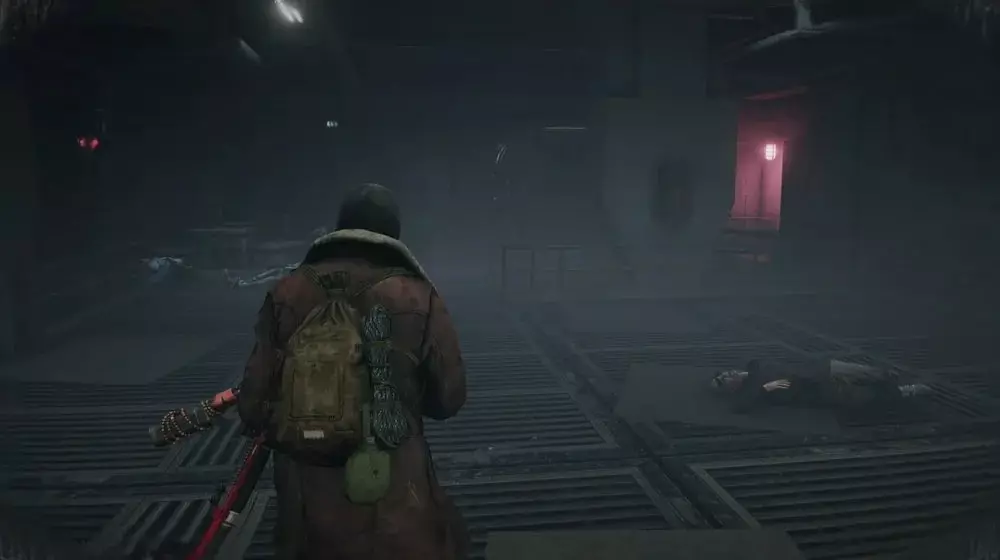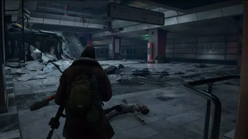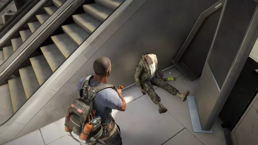 地点3:离开隧道后,通过最近的自动扶梯上楼,或者从站台中间的坠毁列车爬上去。到达二楼后,朝着隧道方向走(如果你乘坐自动扶梯,隧道在你的右侧;如果你爬坠毁列车上来,隧道就在最近处)。你会看到一具士兵的尸体,病毒样本就在尸体前方斜坡的尽头。