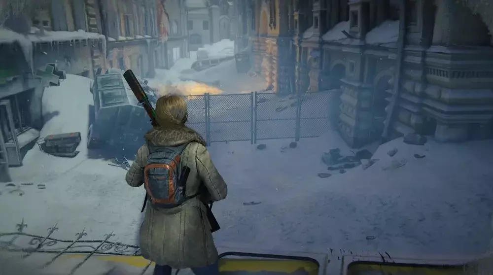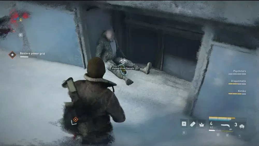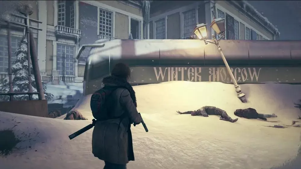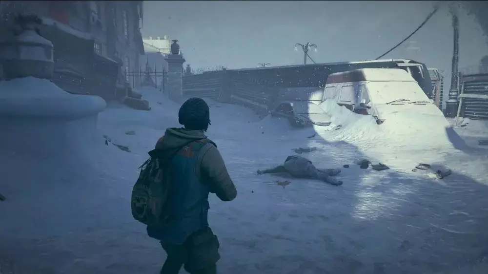 位置3:从博物馆出来到外面。向左走,你会看到一辆红色面包车和一辆部分陷在雪中的汽车,它们靠近一辆公交车。在那附近寻找一具士兵的尸体,病毒样本应该就在尸体旁边。