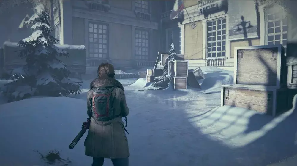 地点3:到达教堂后待在外面并向左走。一直走到后面,在一些板条箱后面。
