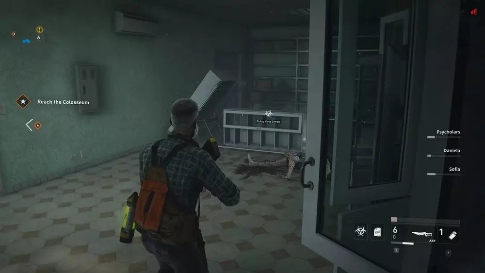地点1:抵达有电梯的区域。前往该区域的后方,在角落里寻找一扇部分被封锁的门。你会看到门旁堆放的物品旁边的地板上有一个可收集的病毒样本。
