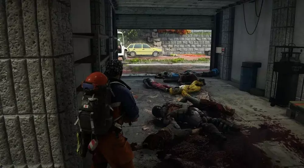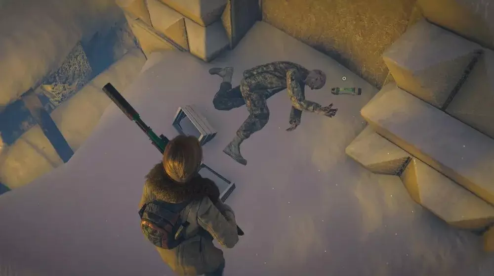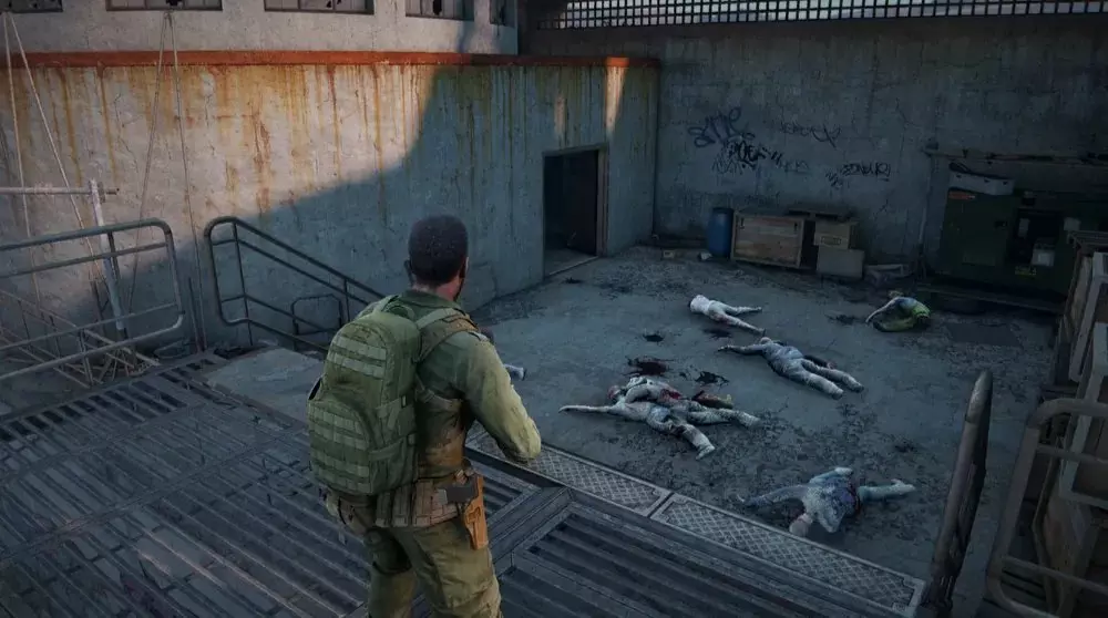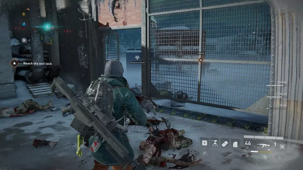 地点3:清除所有毒气后,前往大门。从另一侧出去,你会走下去并向左走。一直移动,直到看到一具士兵的尸体,病毒样本应该藏在尸体和一个容器旁边。 提示:尽快收集这个样本。一旦有人从安全的隧道下来进入塔楼,就会有一群丧尸开始扑向你的队伍。在那里停留的时间越短越好,所以快速收集样本很重要。如果确定这个位置会出现样本,最好让没有样本的人先下到塔楼,直接前往这个位置收集,而不是标记出来让其他人收集。在这一阶段,整个团队都处于极高的风险中,因此高效移动至关重要。