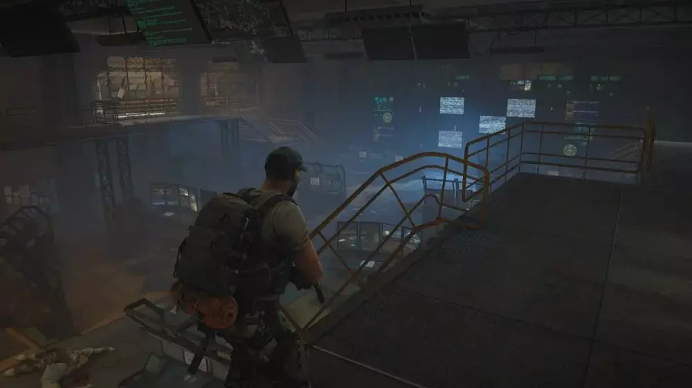 位置2:到达涡轮大厅后部,在该区域四处移动,找到通往上层走道的楼梯,那里有打开门的控制面板。在控制面板和大厅的左侧,沿着左侧楼梯旁的小路向下走,直到到达一个由木箱组成的路障。在路障尽头,你会发现一具士兵尸体和一个病毒样本。