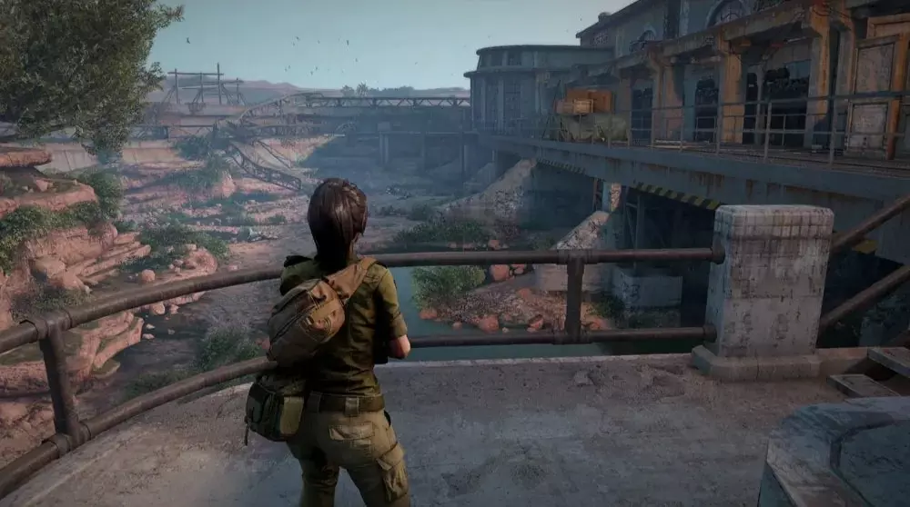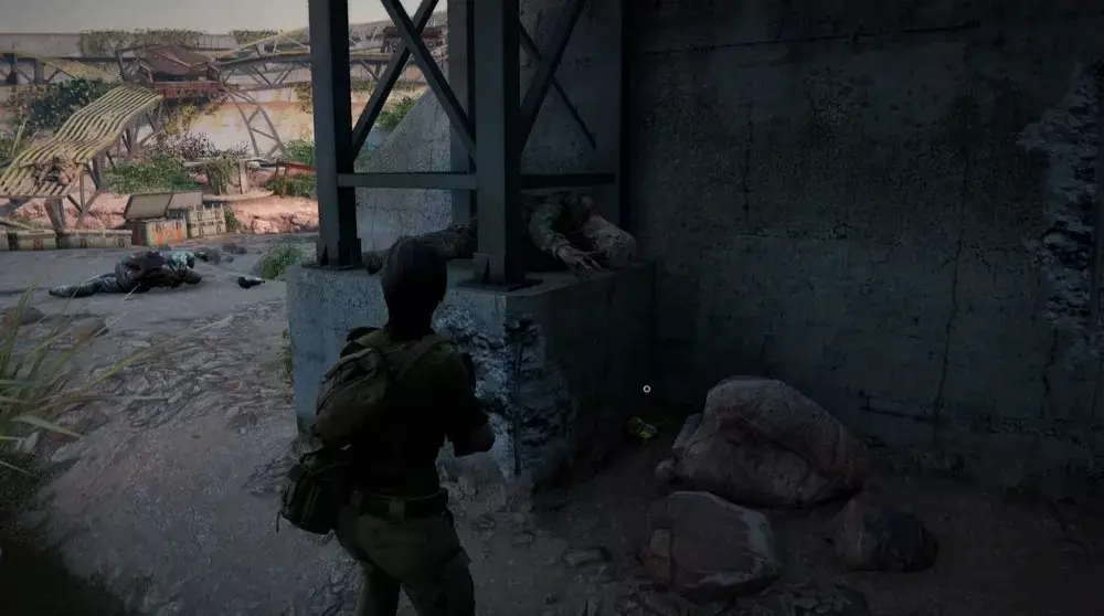 位置3:离开涡轮大厅后,沿着通往建筑物另一侧的小路向下走。下去后,朝左侧的第二组水坝闸门走去。你会在左侧的钢梁上发现一具士兵尸体,尸体后面的一些岩石旁放着一个【病毒样本】。