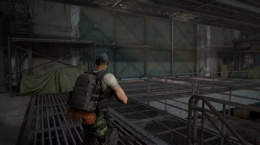 地点1:清理工厂外部后,沿着右侧小路前进,打开通往涡轮大厅的门。先不要上楼,检查楼梯后方。那里应该有一具士兵尸体和一个【病毒样本】。