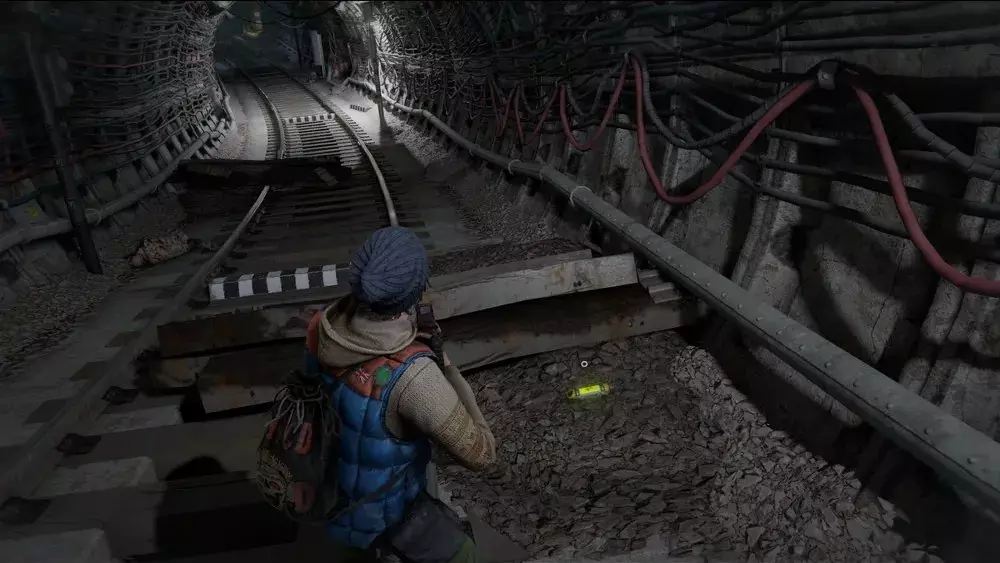 位置1:坠入通往火车 depot 下方的隧道后,向前走,右转,左转,再右转一次,即可快速到达样本位置。或者,在隧道中随意走动,直到找到一面墙,其上角写有“⟵C”和“D⟶”。在右侧,“D⟶”字样的下方,可以找到一具士兵尸体以及被很好掩盖的【病毒样本】。