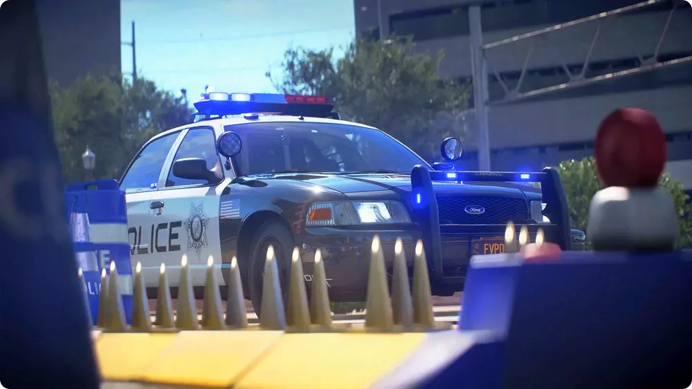 道路封锁 道路封锁是指使用坚固路障和巡逻单位封锁道路及路线。协调和设置封锁所需的时间,将是FVPD(虚构谷警察局)控制或阻止嫌疑人逃跑选择的一个重要因素。