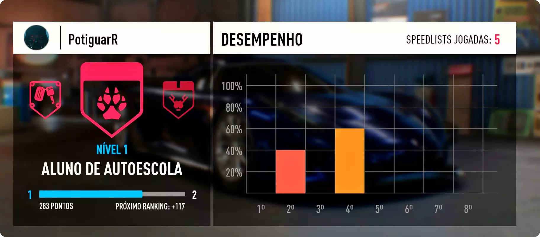 无轮也疯狂 达成2级声望(REP)。 参与任何赛车赛事或活动,都将获得声望(REP)点数。