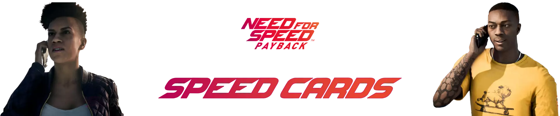 《极品飞车:复仇》中的速度卡牌用于最大化你的车辆性能,也就是说,商店或车库中没有可供购买的性能零件。你可以通过以下方式获得速度卡牌:在单人模式中赢得比赛、完成多人模式的比赛(无论名次如何,只要冲过终点线即可),或是在卡牌车库中抽取。 获得的每张卡牌可以立即装配到车辆上、以游戏内货币出售、兑换为1个代币,或是存入车库以便日后装配、出售或兑换。你获得的每张卡牌都绑定于你赢得该卡牌时所驾驶的车辆,无法将已获得或购买的卡牌转移到其他车辆上。每张速度卡片都有三个要素:评分、优势和品牌。