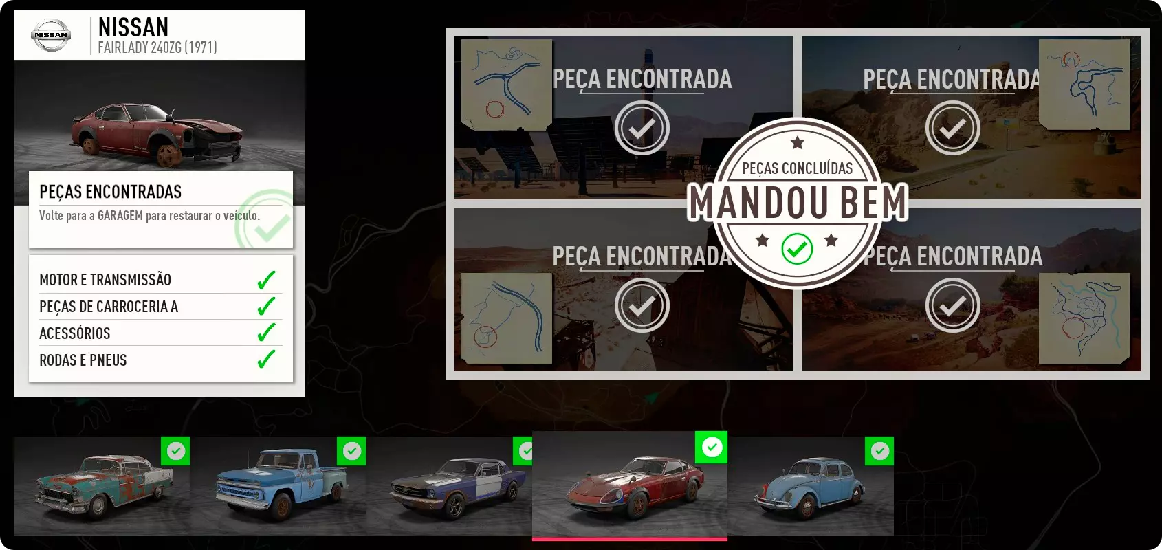 日产淑女240ZG 1971 完成麦克的任务线【联盟73】后可获得日产淑女240ZG的底盘。 联盟73的乌多·罗斯会给出一条线索,指出底盘的位置,在银峡谷收集到底盘后,将解锁重建淑女240ZG所需的所有后续零件位置线索。