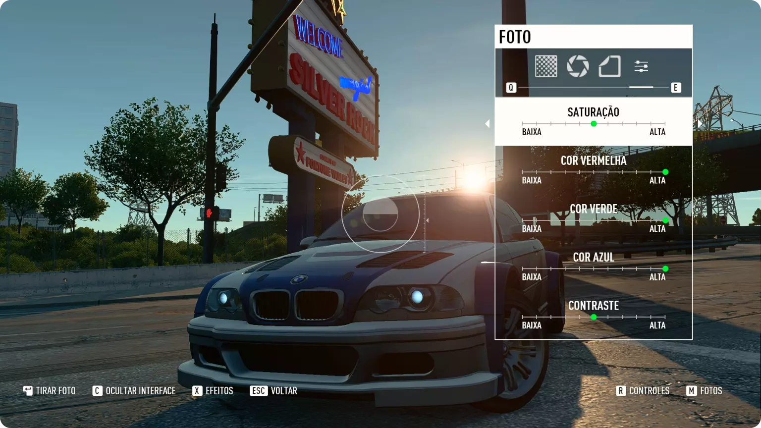 ✦ 暗角:调暗图像的角落,模拟相机镜头的局限性。 ✦ 颗粒感:添加或去除“噪点”以获得理想的电影效果。 ✦ 车身损伤:切换你的车辆损伤状态。 ✦ 镜头反光:隐藏光源产生的镜头反光。 ✦ 驾驶员:选择你的头像是否出现在照片中。 ❖ 色彩调整