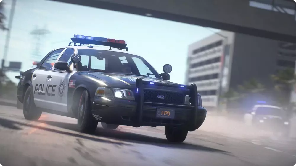 福特维多利亚皇冠 它们会作为对低级别追捕的响应出现,也会作为路障和高峰路段封锁的一部分出现。这是幸运谷最常见的标准警车。它能执行多种机动动作,通常是最先开始追捕的车辆。