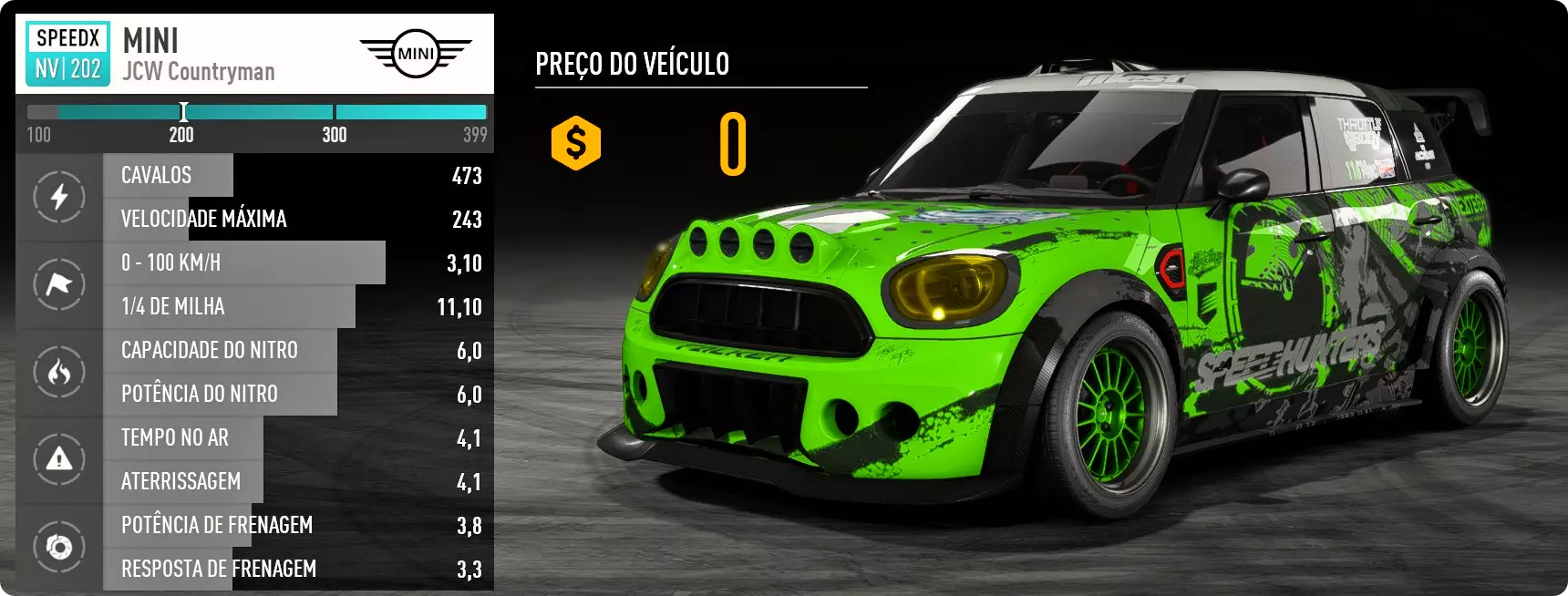 MINI John Cooper Works Countryman必须在【SpeedCross】商店购买。建议使用NexTech速度卡片调整其性能,因为这会提供速度和刹车加成。该车辆包含在DLC【All Cars Bundle】中,可免费获取。
