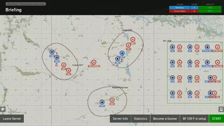 此外,标有红色棍子图标的服务器已禁用鼠标操作,请注意。 以下是当前环境的说明(截至2022年2月5日): 首先,在前往实战前,有一个作为练习场的“BERLOGA Duel and Dogfight”服务器。在这个服务器上(如果有人的话),可以与真实玩家进行空战练习。