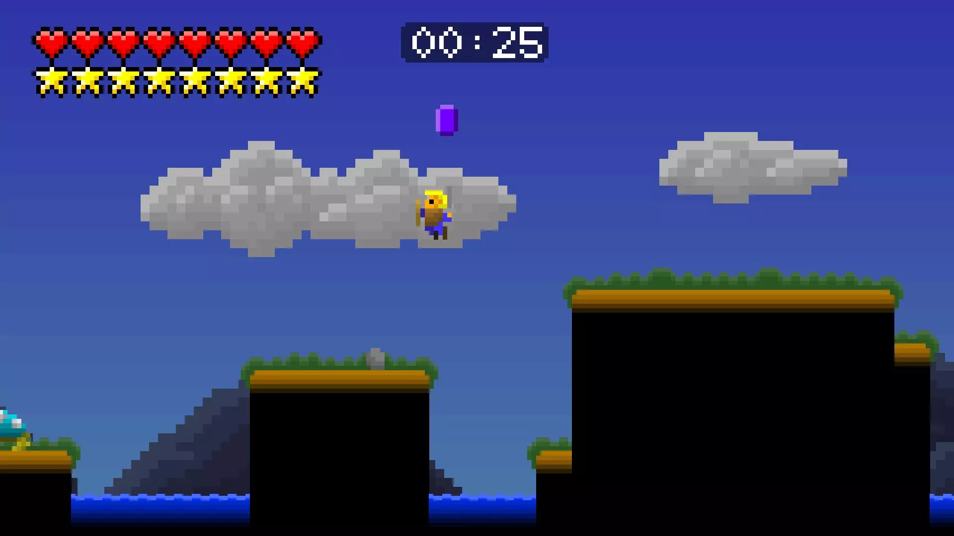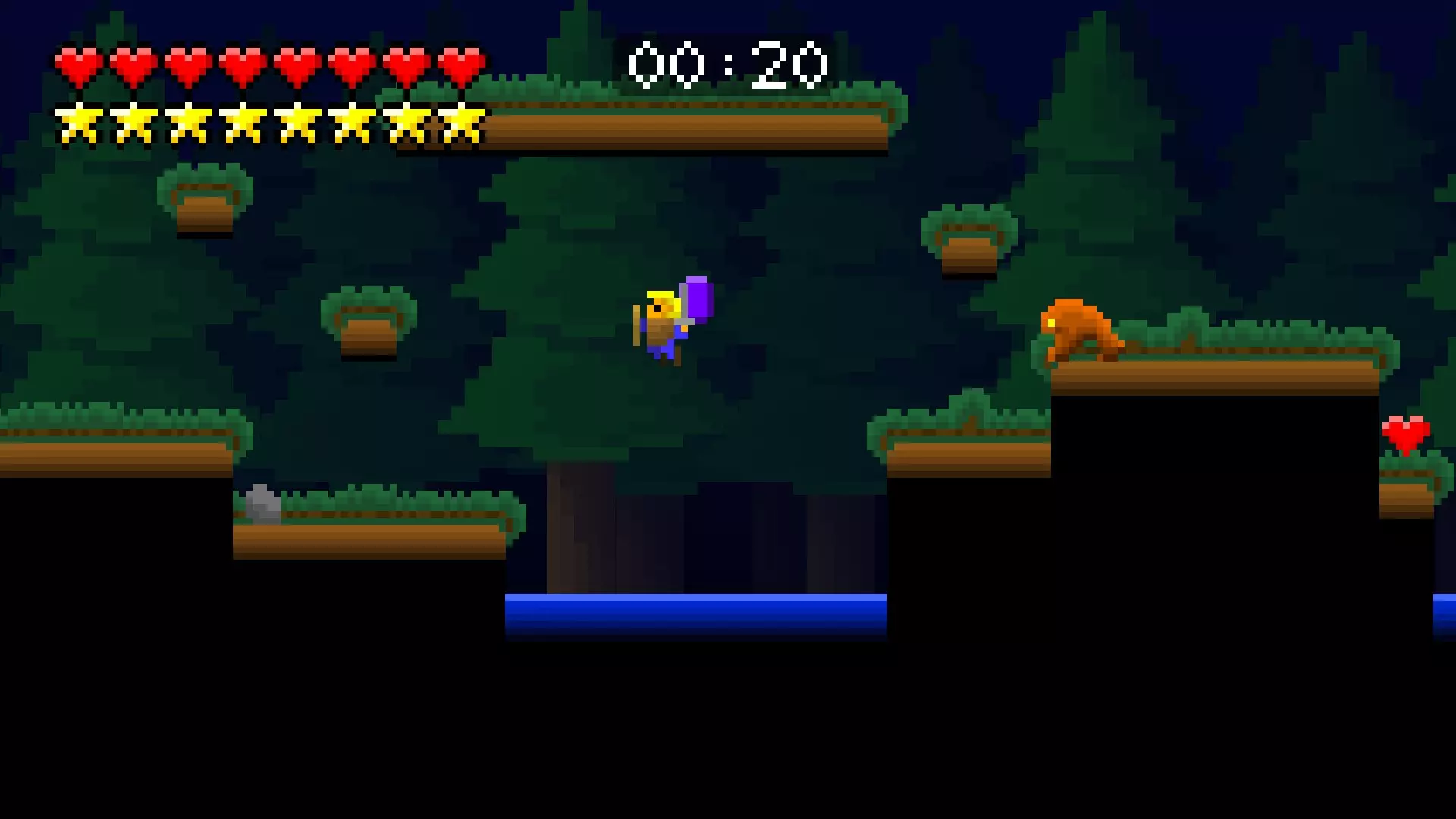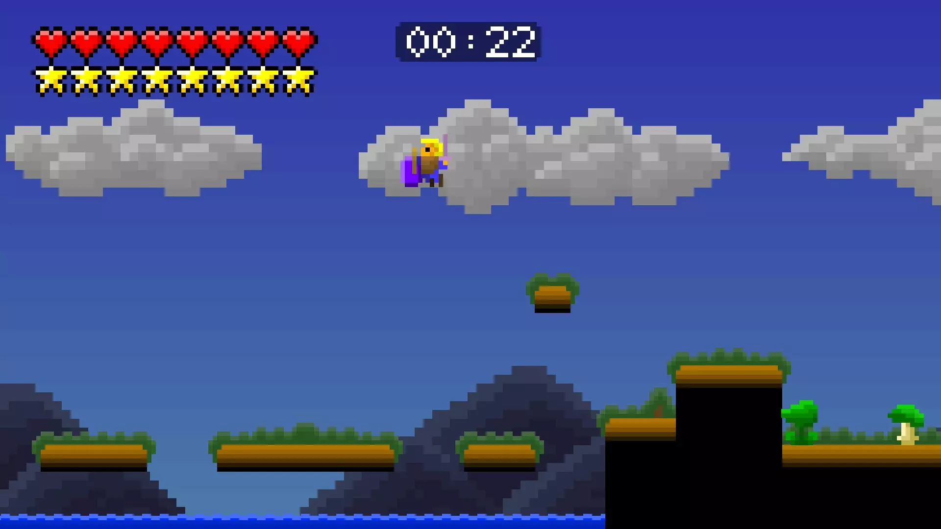 第8关 是时候飞向天空了。穿过湖泊,尽可能向上攀爬,按住右键并跳跃。