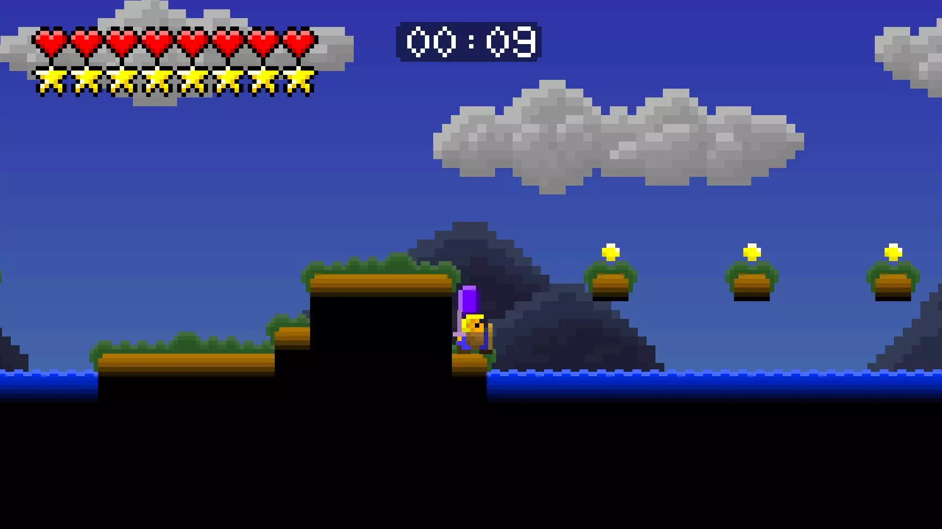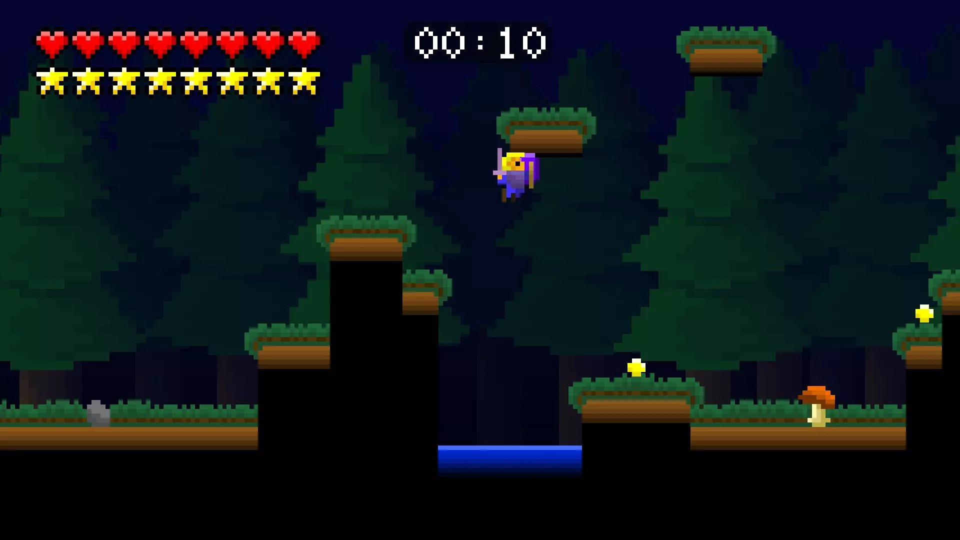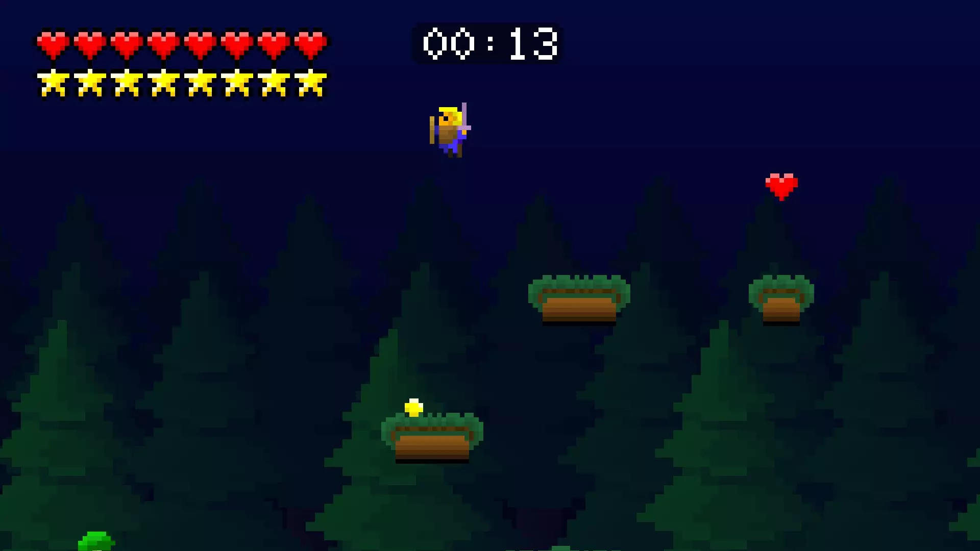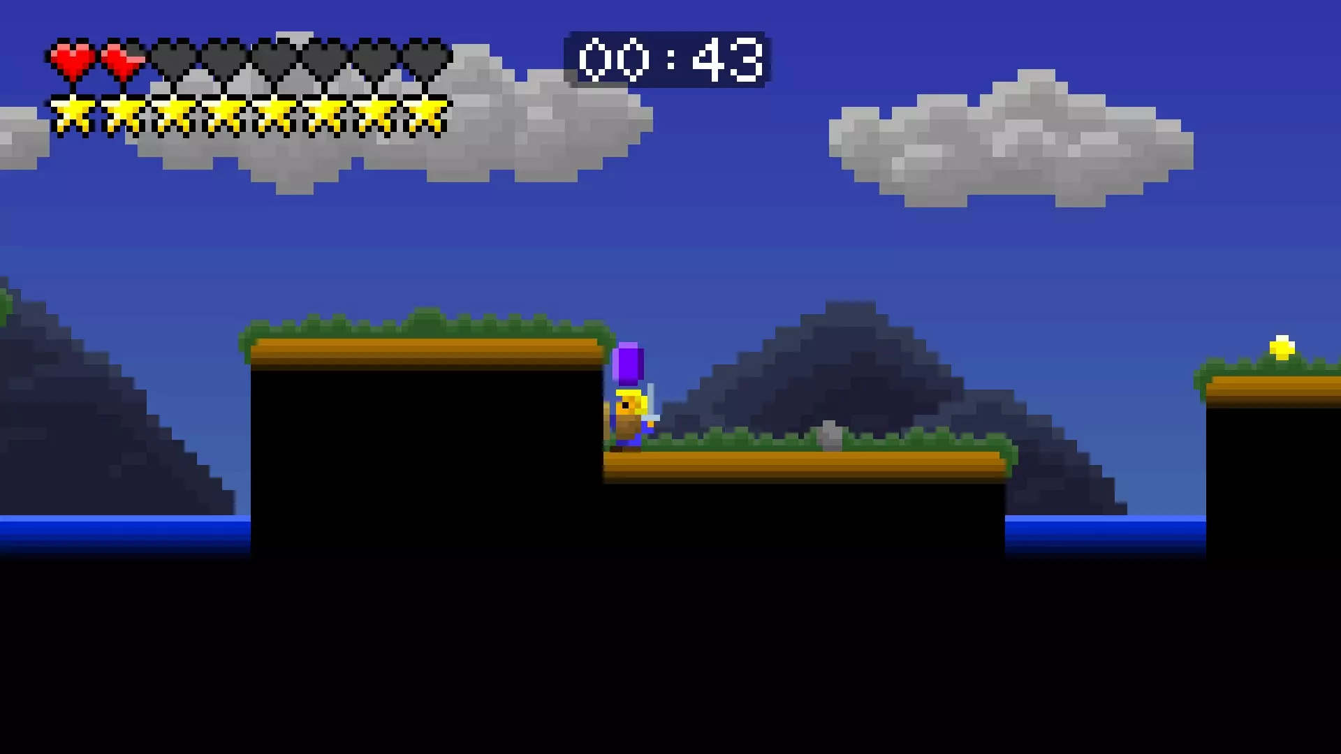 第8关 是时候飞向天空了。穿过湖泊,尽可能向上攀爬,按住右键并跳跃。
