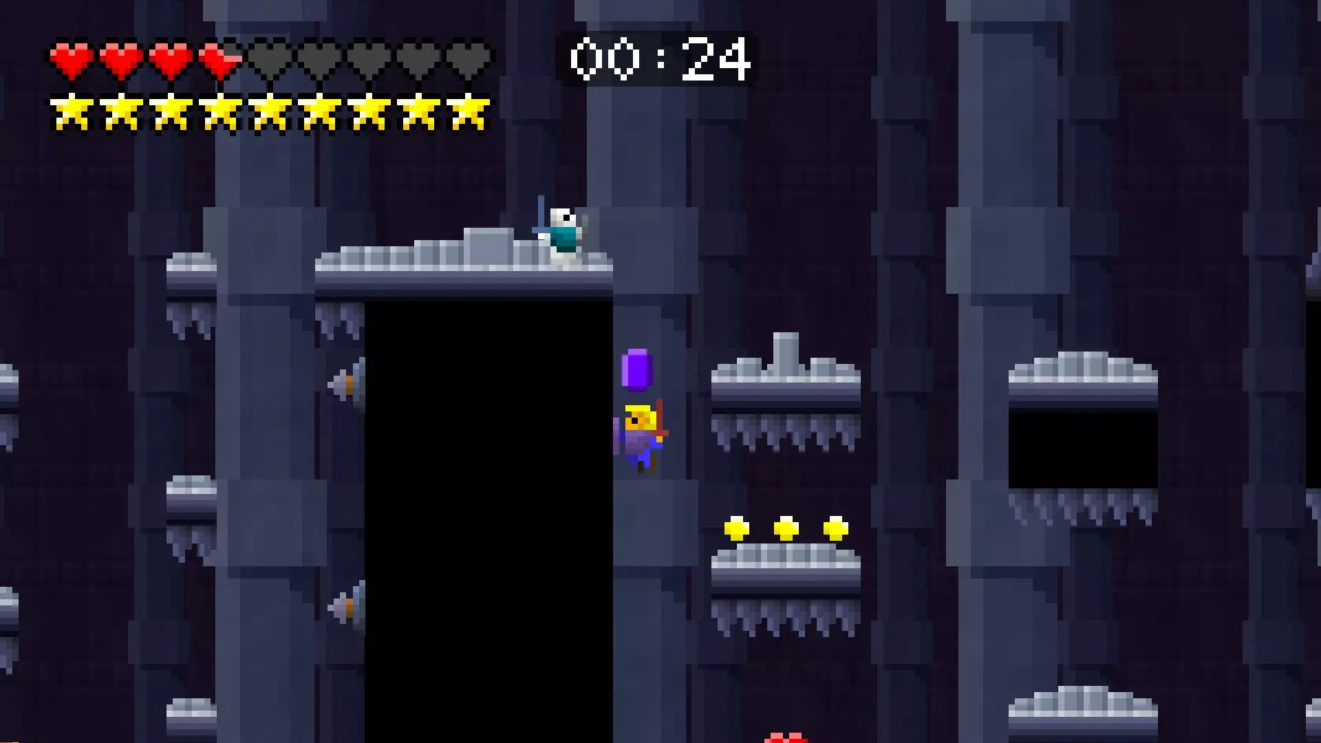 第34关 这座塔的尽头有一个挑战关卡,有人觉得把宝石藏在那里是个好主意。额外挑战:尝试在不受伤的情况下收集宝石。