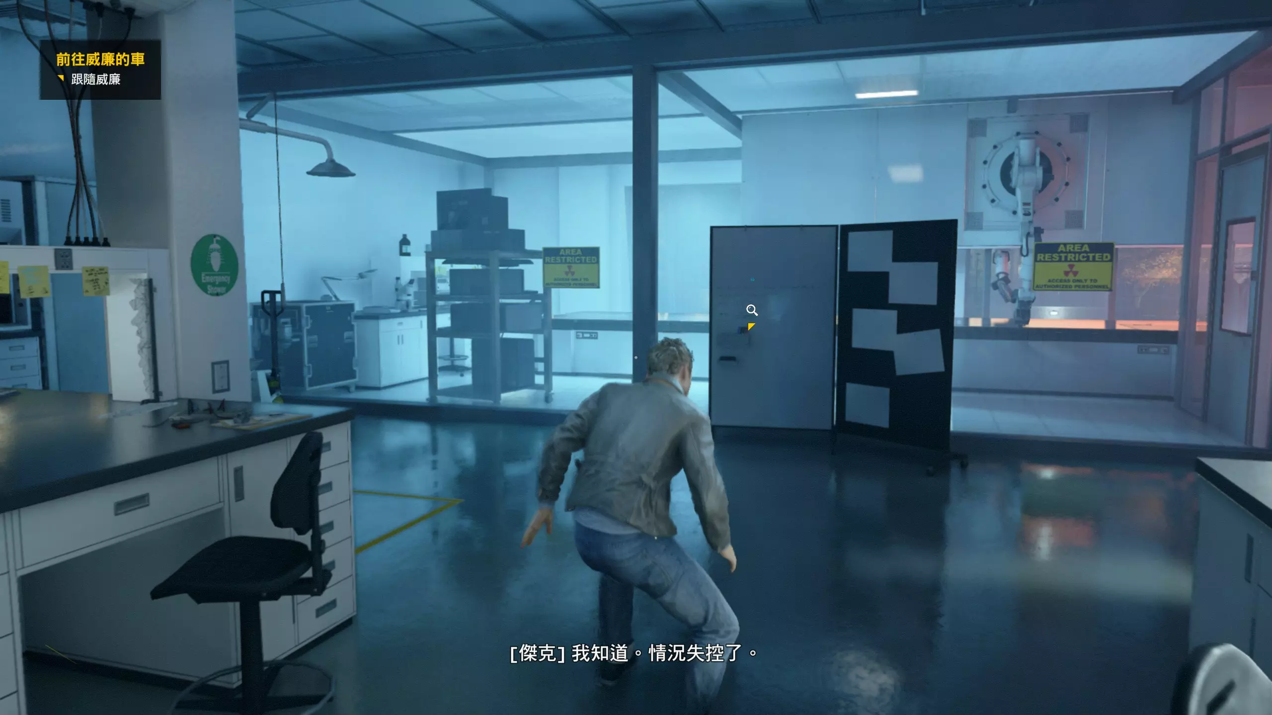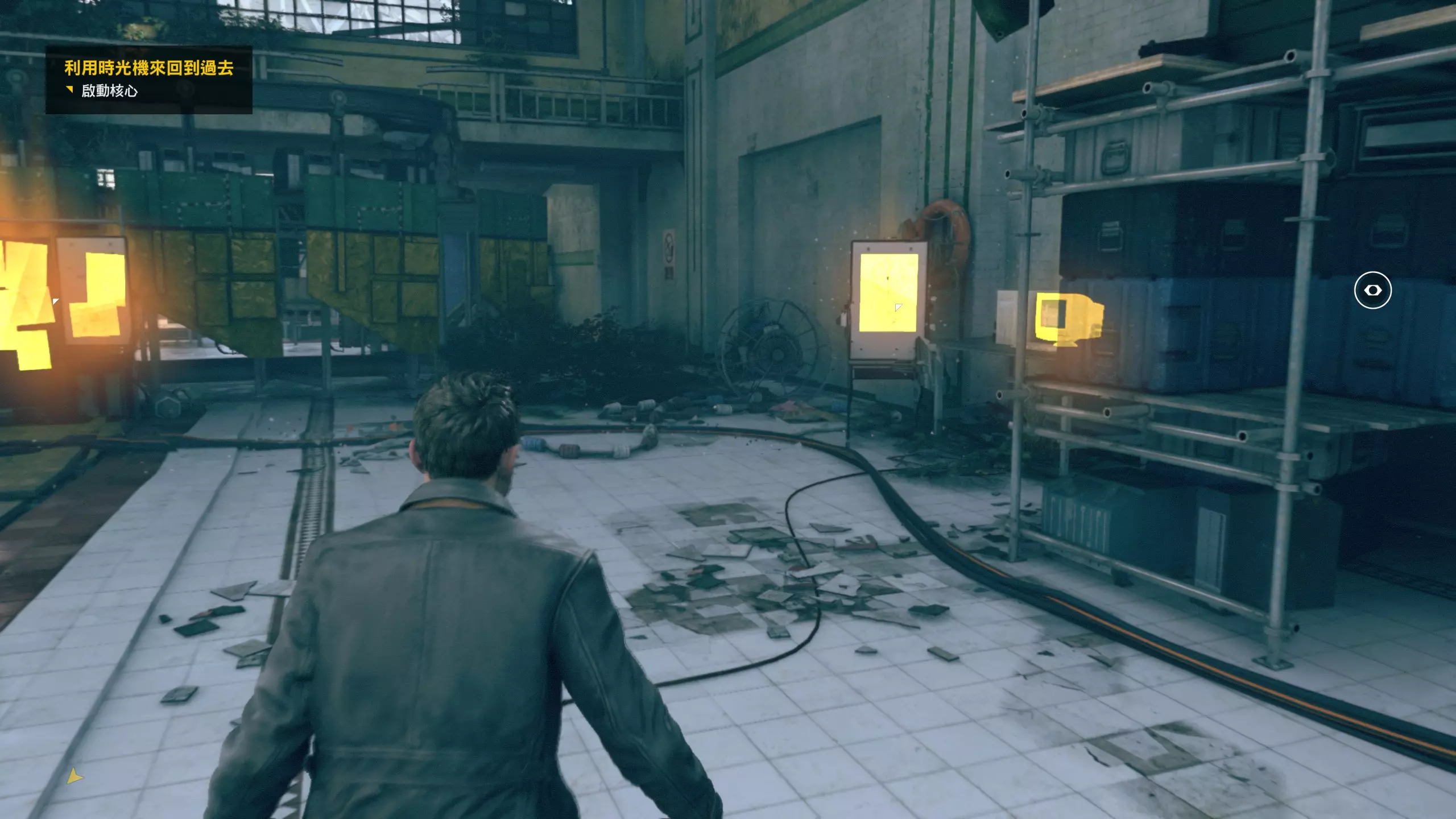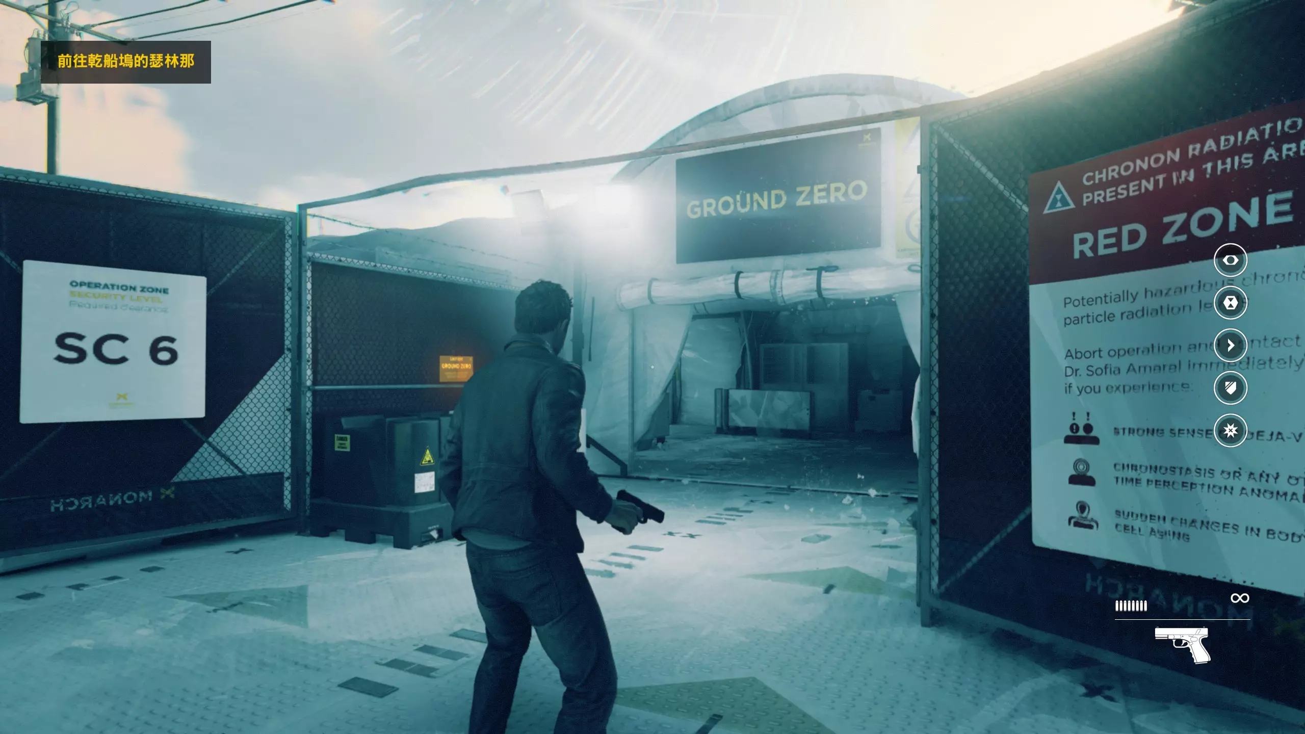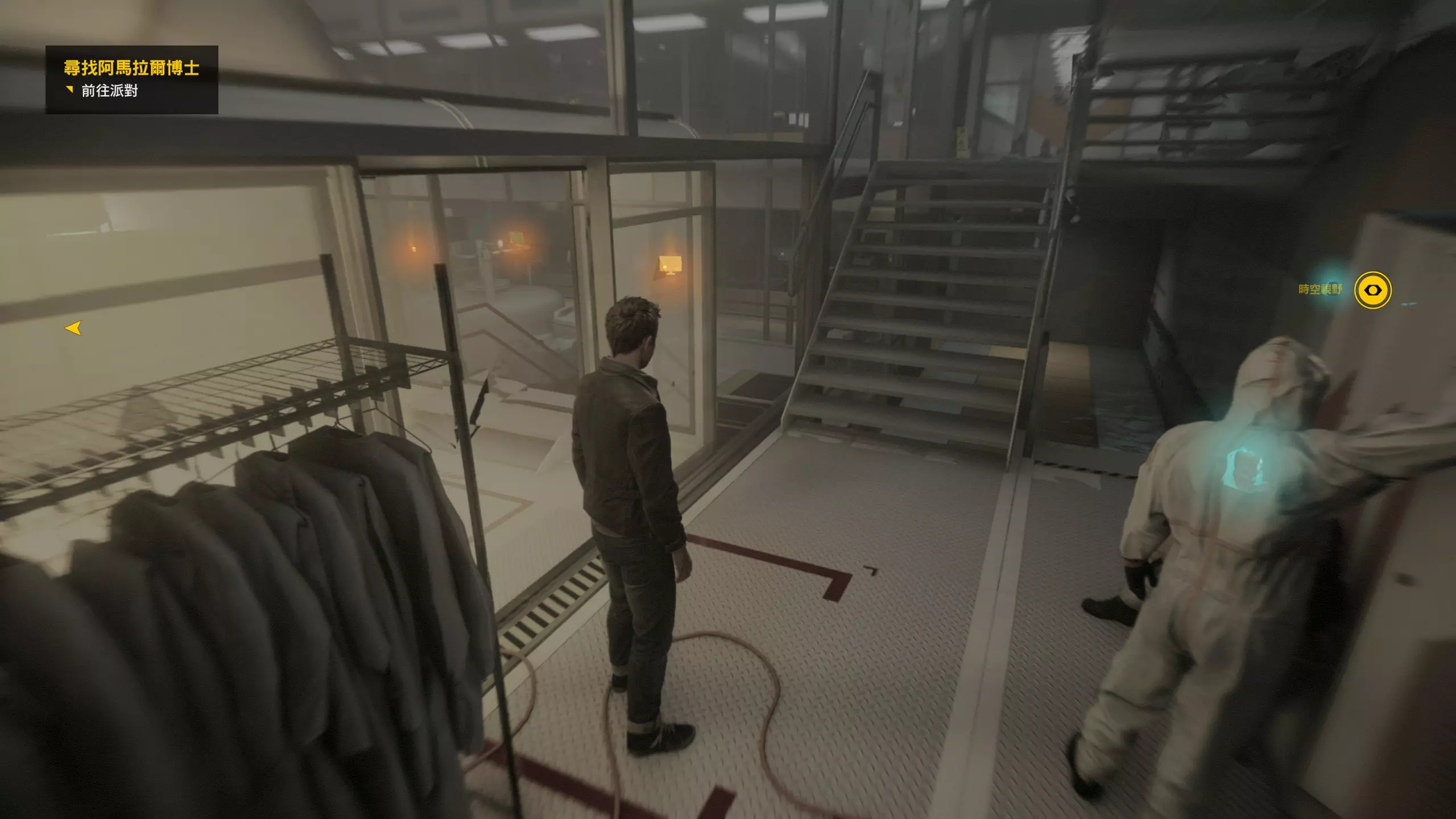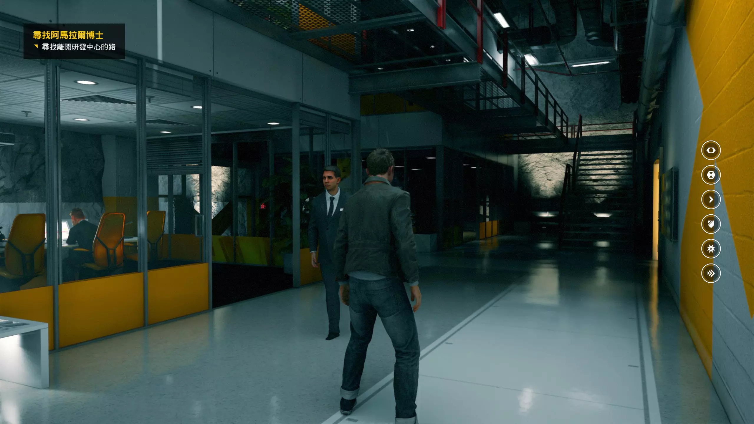 2.分歧点的选择,本指南选了左侧选项,即与杰克谈心(因为我更喜欢这个走向)。 第3幕-第1章:研究设施 本节一共有17个故事物品,分别是7个文件、8个电脑、2个媒体;还有8个时元之源、2个情报物品、1个量子涟漪。 1.本节最开始就会学习时空冲刺(长按时空闪避键以发动,也可以在技能效果结束时按下瞄准以触发焦点时间)。时空冲刺期间基本是无敌的,且靠近敌人时可以按下攻击键以实施近战击倒,平时还可以赶路用,是非常实用的技能。有一个成就是累计使用时空冲刺移动100米来获得,非常容易达成。 接着会遇到机枪台,可以利用时空冲刺抵达其后方以关闭它。然后,就在这个机枪台所在的位置,右边的楼梯高处是第1/8个【时元之源】。