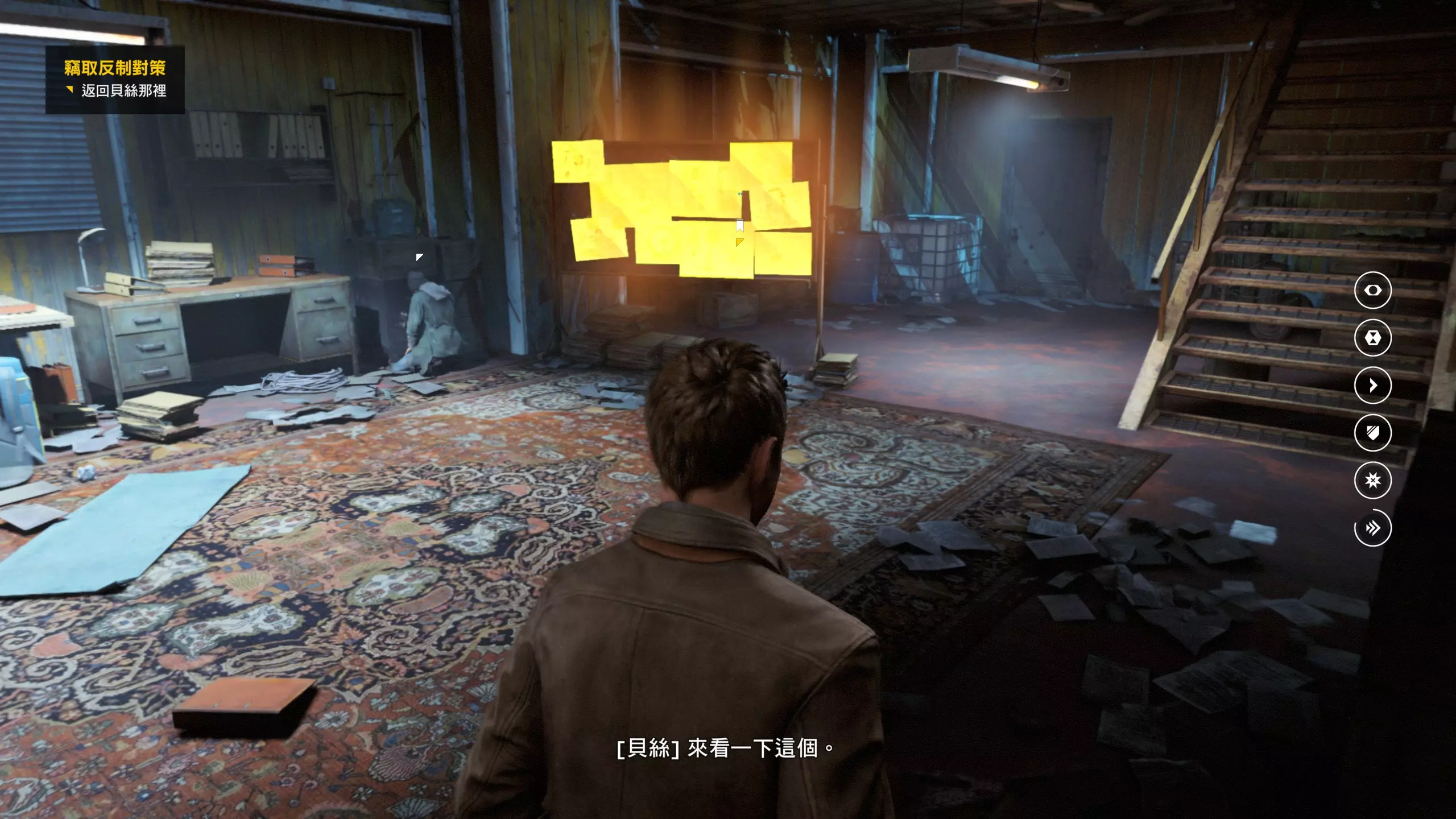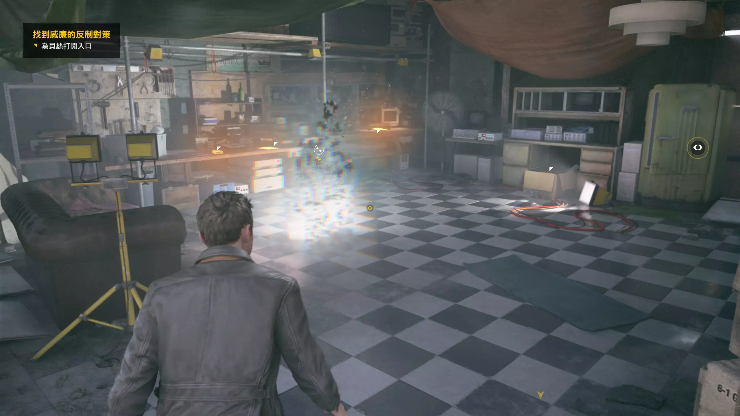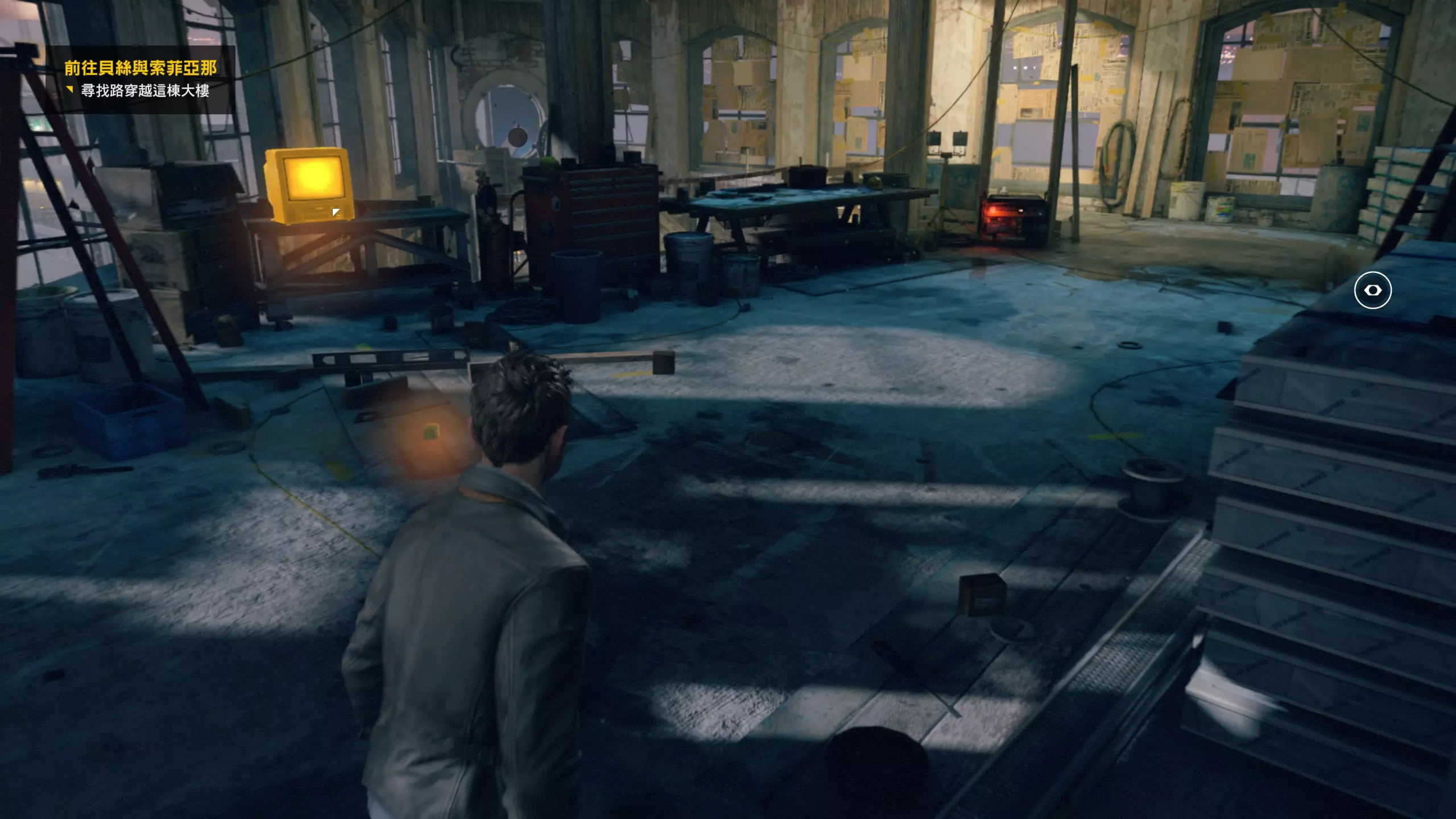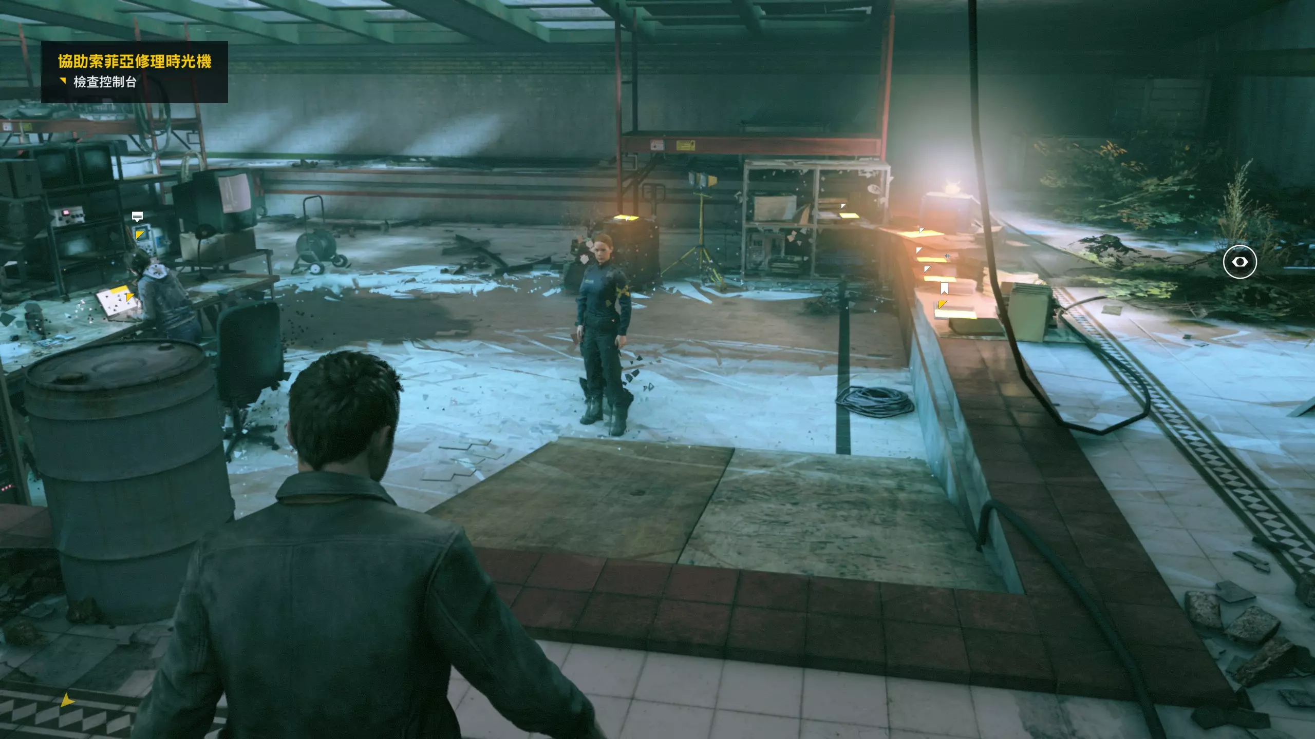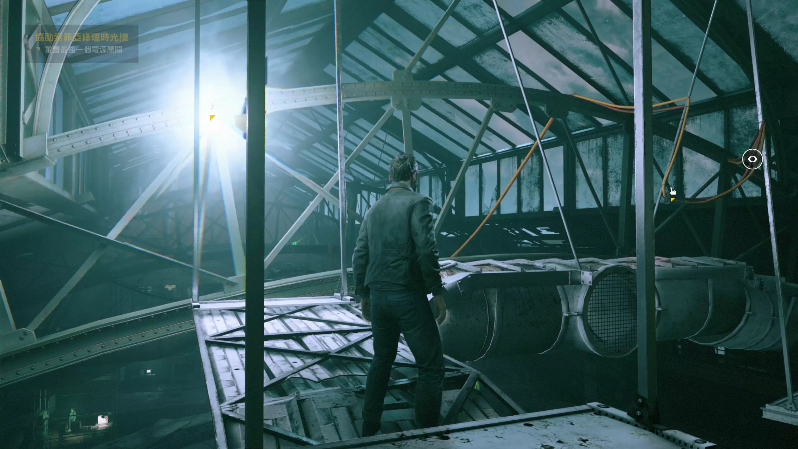 第4幕-第4章:威廉的工作室(2010年) 本节一共有5个故事物品,分别是4个文件、1个媒体;还有3个时元之源、1个量子涟漪。 1.跟随贝丝走到下图位置时,左侧灯下的配电箱可以互动,是量子涟漪1/1,容易错过。