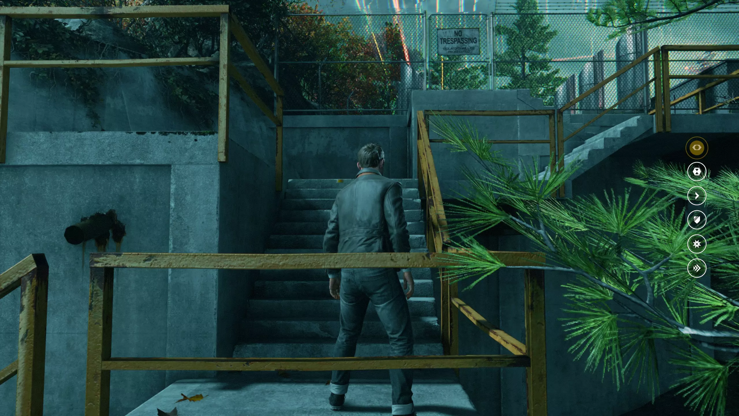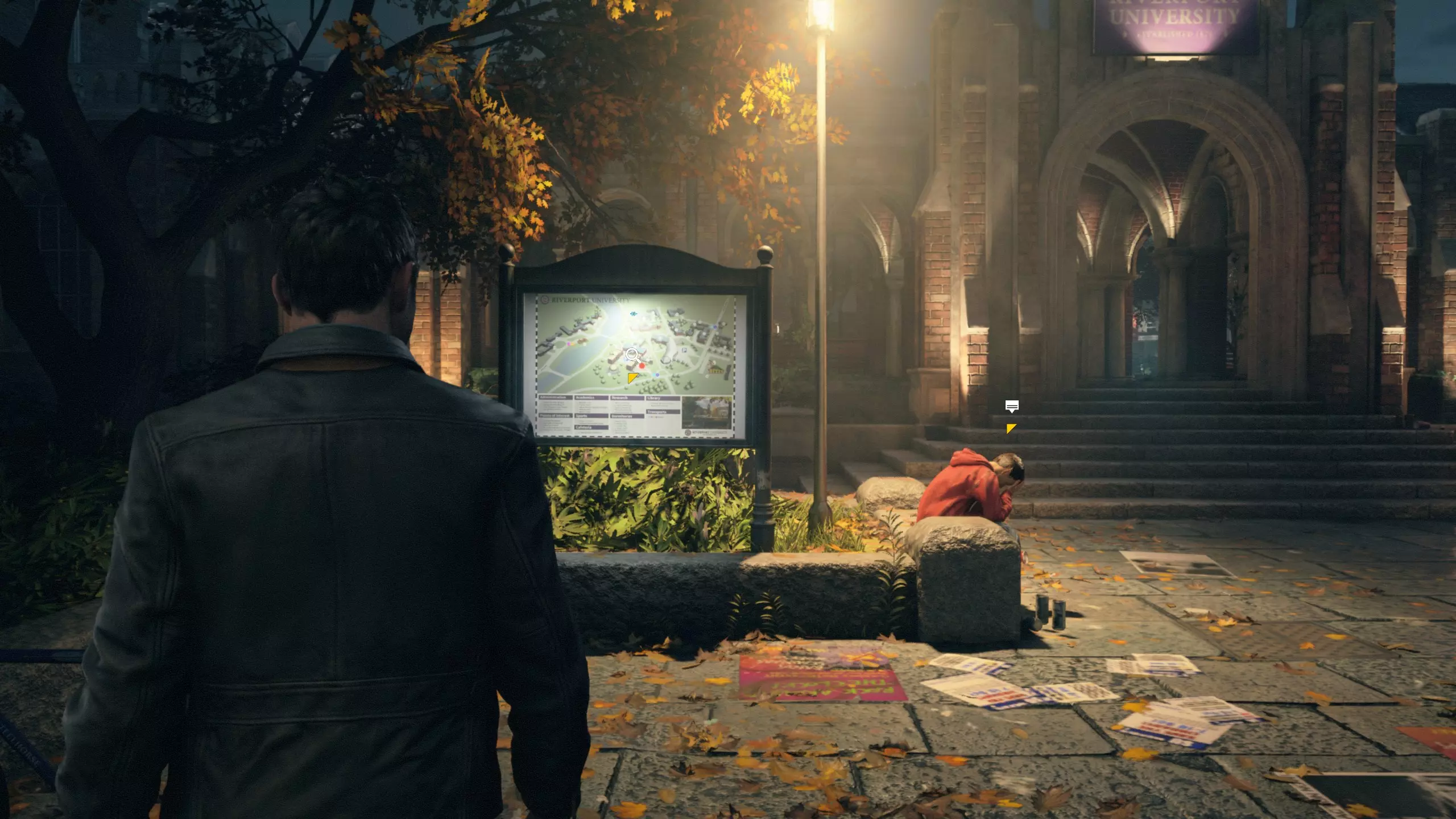 第5幕-第2章:返回大学 本节一共有1个故事物品,是1个文件;还有5个时元之源。 1. 击杀两名敌人,前进到下图位置,可以先走右边楼梯上去收集第1/5个时元之源。