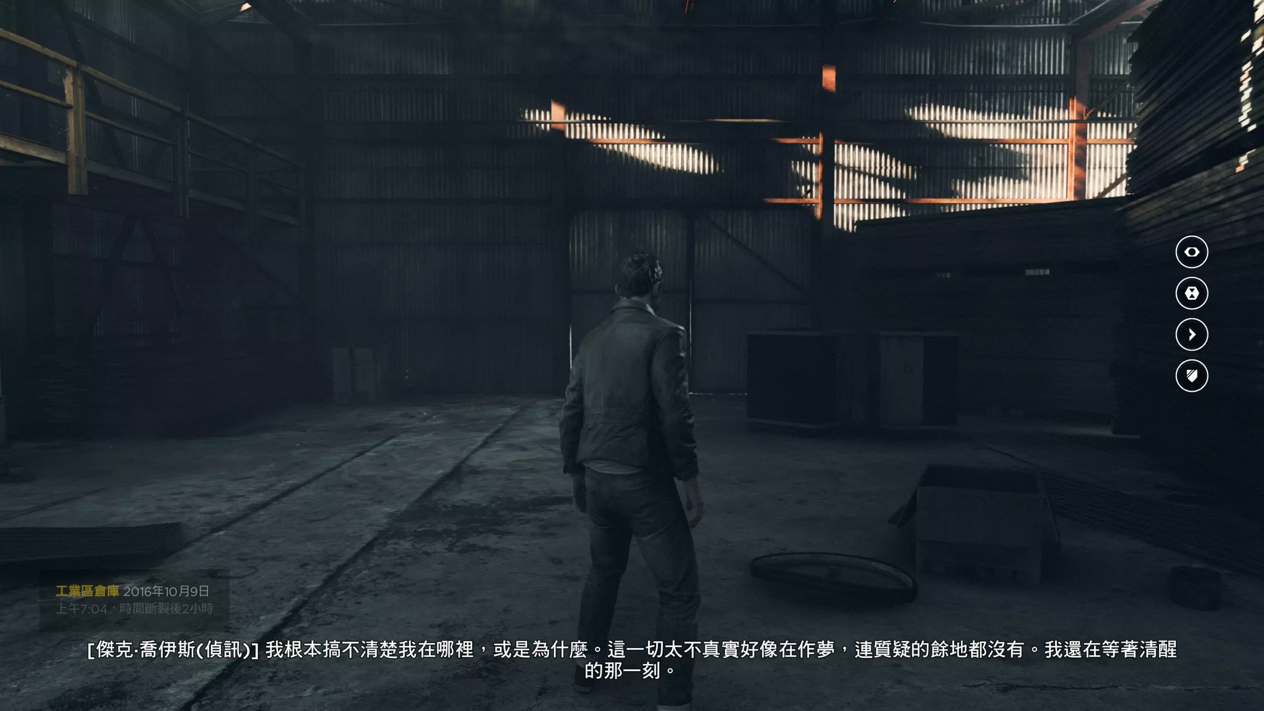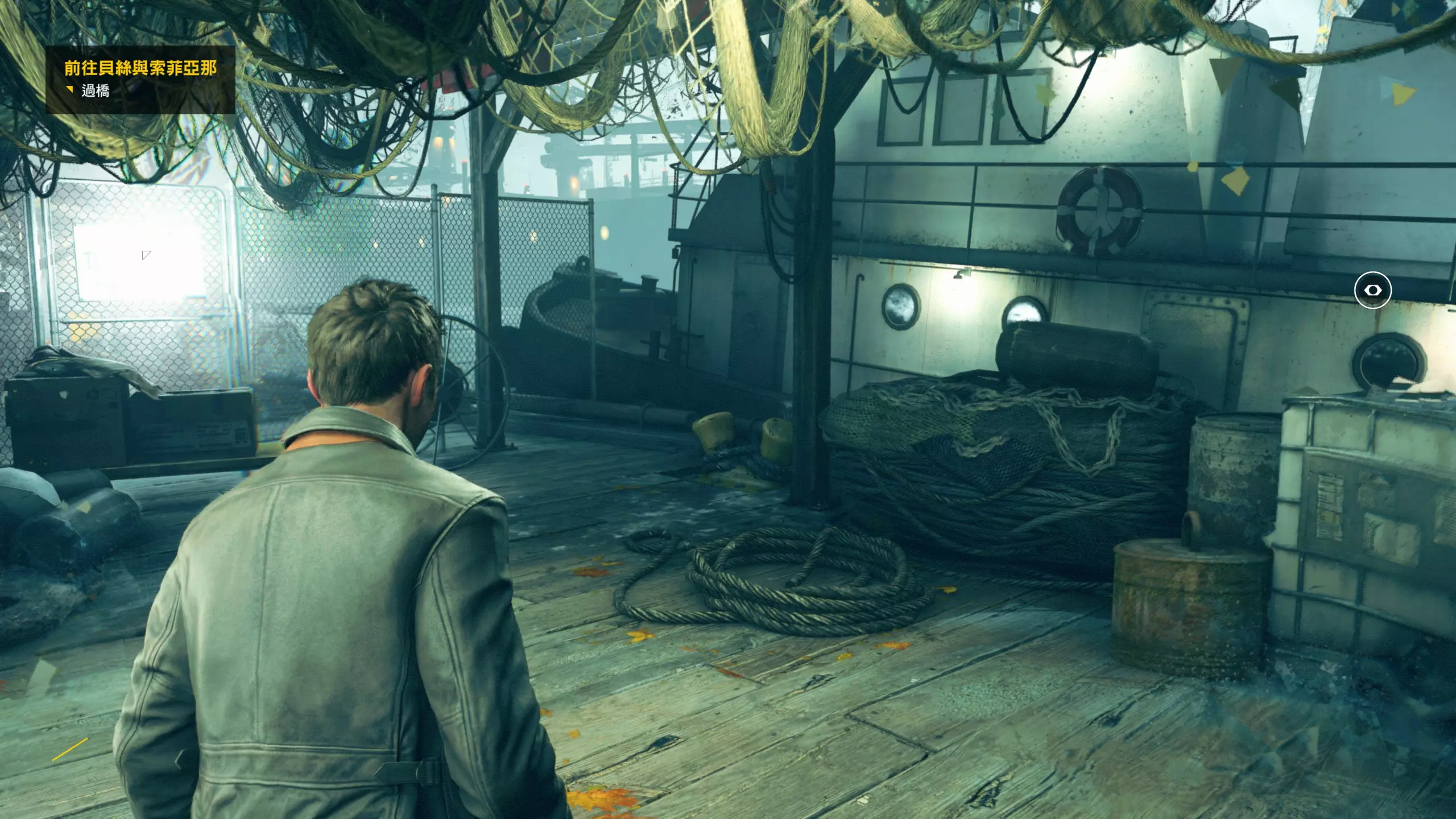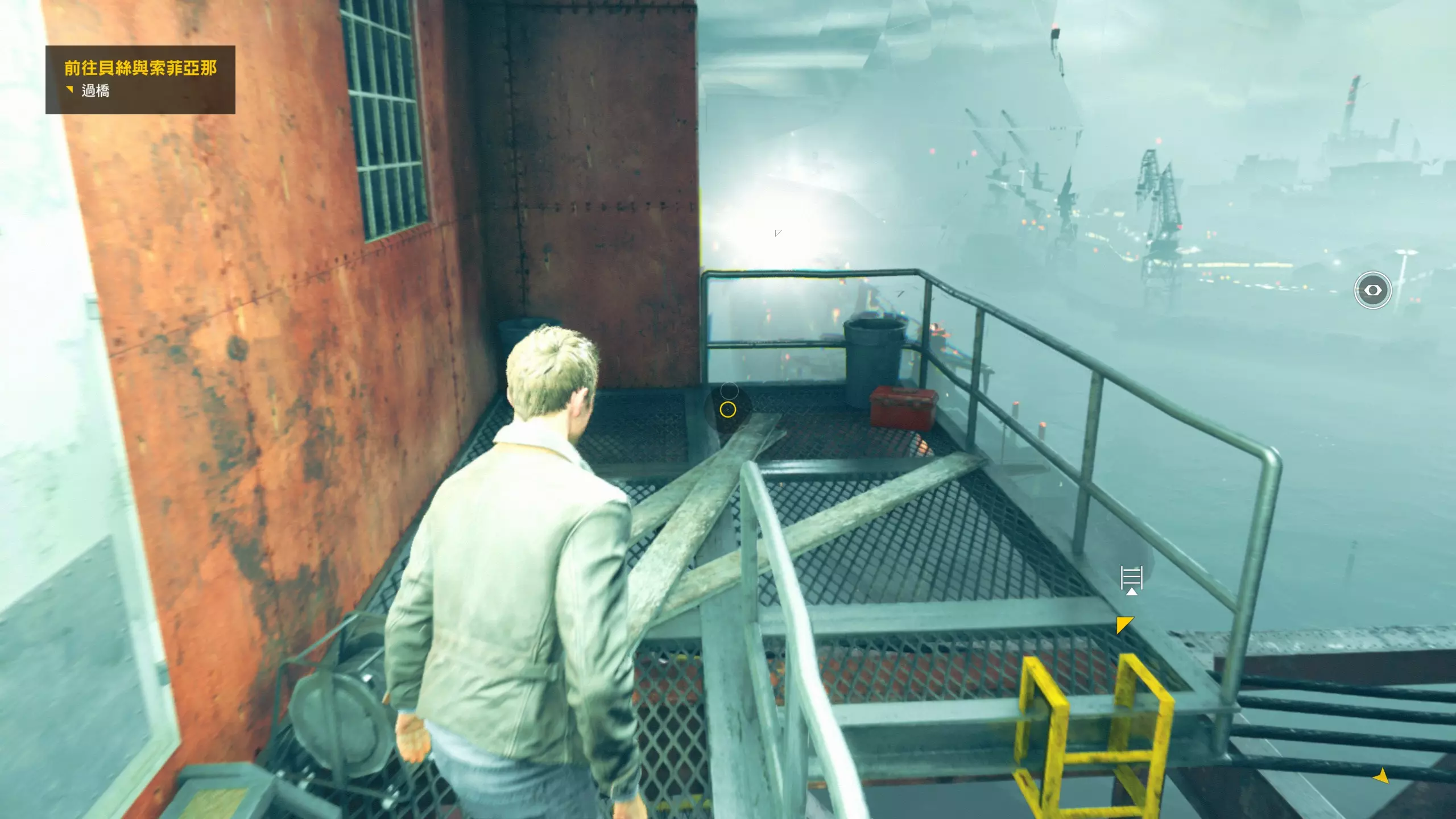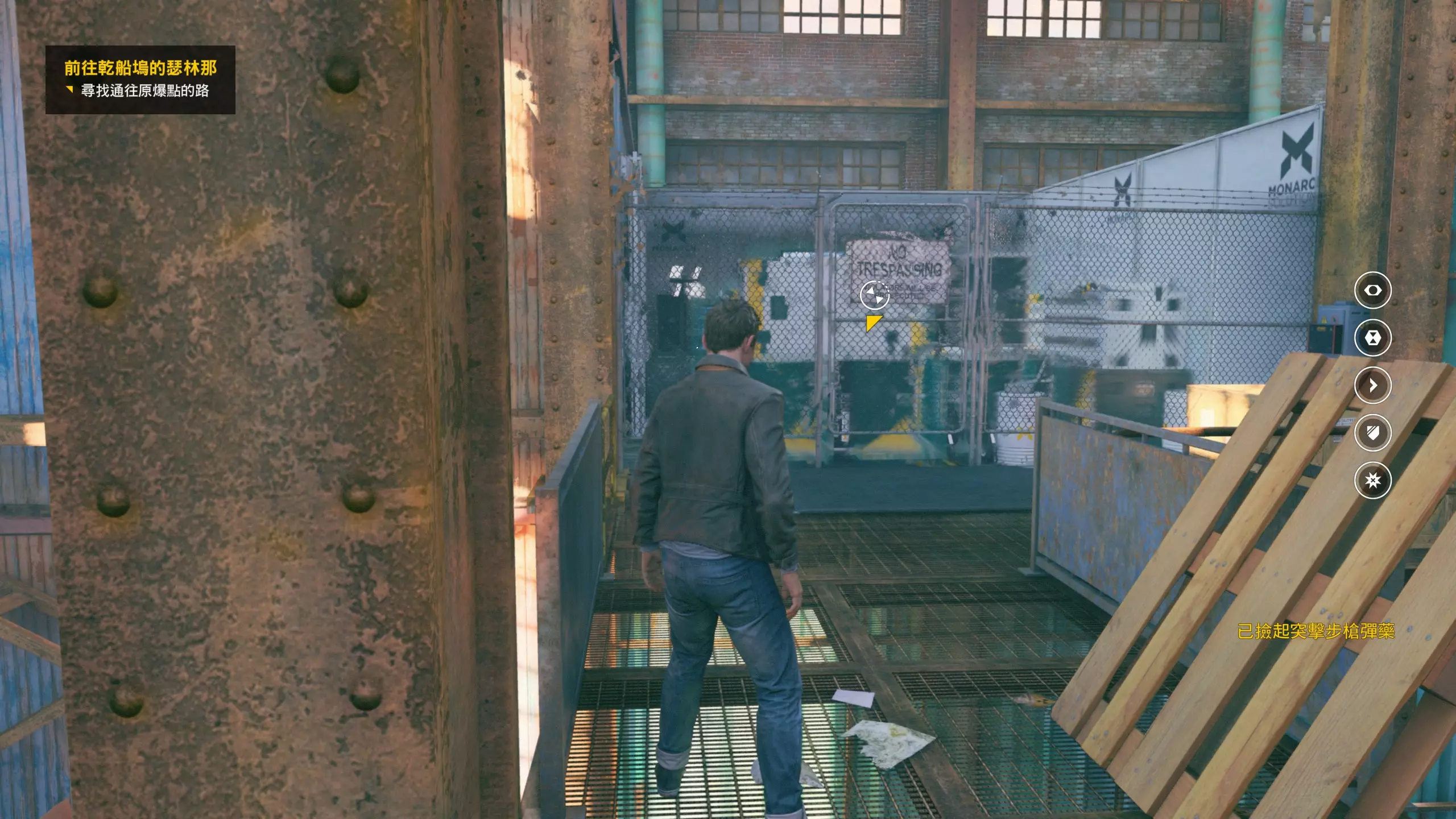 第3幕-分歧点:阿马拉尔/哈奇 本节没有任何可收集的物品。 分歧点的选择,本指南选了左侧选项,即相信阿马拉尔而开始提防哈奇(因为我更喜欢这个走向)。 第4章-第1幕:唐纳利港口桥 本节一共有5个故事物品,分别是3个文件、2个媒体;还有6个时元之源。 1. 本节一开始往前走一点就到下图位置,左侧有第1/6个时元之源,然后爬到高处可以找到第2/6个时元之源,然后再爬梯子是正确路线。