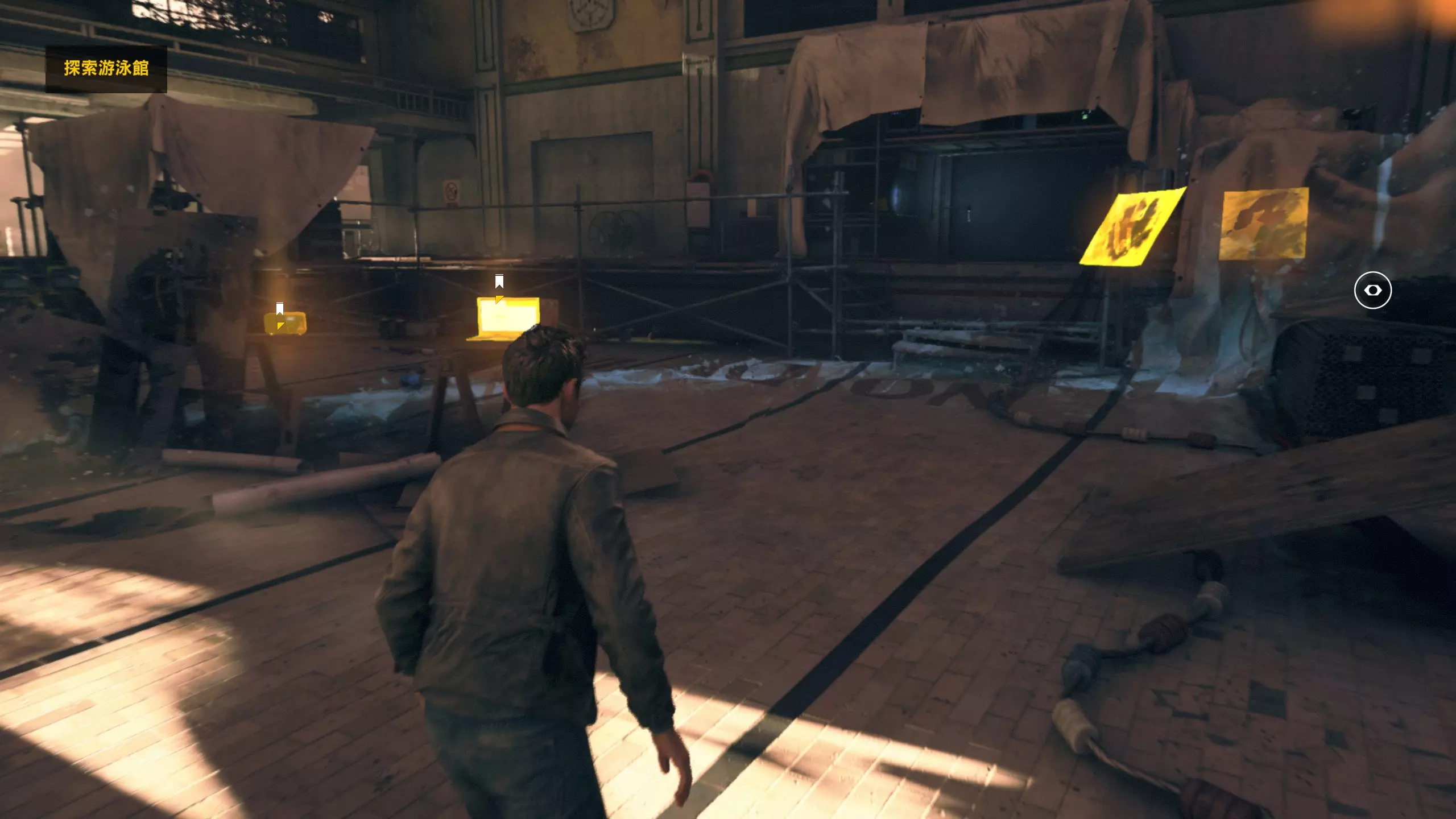 6.随后来到时光机所在的大空间,这里的前身是游泳池。先不着急推进流程,这里左右两侧都有收集品。先看左边,有第3/8个文件(5/11)和第4/8个文件(6/11)。