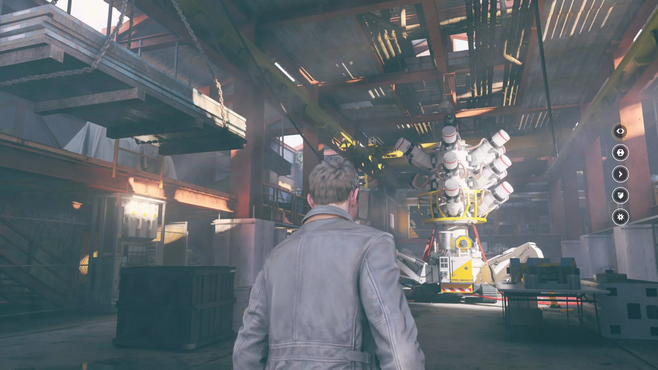 5.继续前进,度过战斗环节,来到室外,这个塔吊需要爬两段梯子才能到达顶端,从第一段梯子爬到中层平台上,可找到【时元之源】4/5。